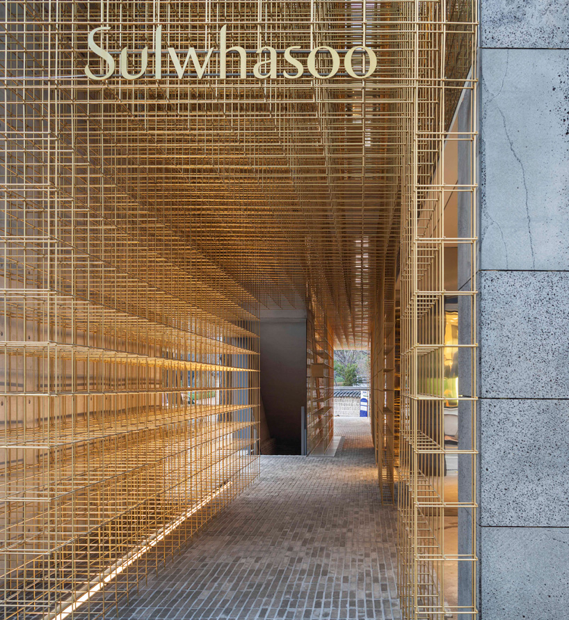 Sulwhasoo สาขาใหม่ล่าสุดนี้ตั้งอยู่บนหัวมุมถนนในย่าน Gangnam (คังนัม) ย่านไฮโซใจกลางเมืองที่ว่ากันว่ามีที่ดินแพงติดอันดับโลก ประมาณสีลมหรือสาทรนี่ล่ะ ตัวร้านมีทั้งหมด 5 ชั้นโดดเด่นด้วยโครงสร้างตารางสะดุดตา ที่ทำจากทองเหลืองขัดเงา เมื่อแสงตกกระทบจะสะท้อนล้อแสงไฟในร้านอย่างสวยงาม