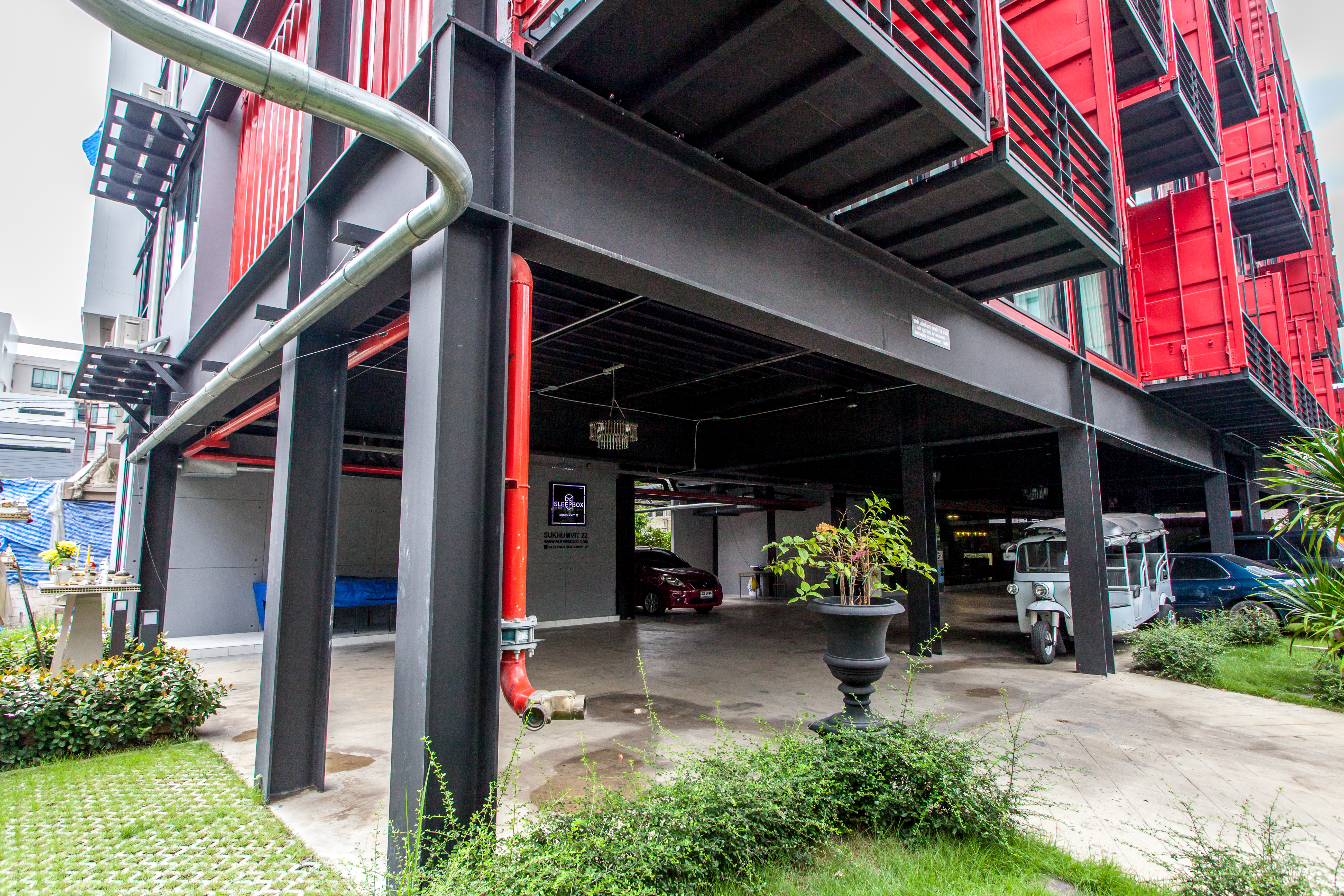 เมื่อเลือกก่อสร้างลงบนที่ดินย่านธุรกิจราคาแพง จึงต้องออกแบบอาคารทางตั้งเพื่อสร้างจำนวนห้องให้คุ้มค่าและเหมาะสม ส่วนโครงสร้างหลักของอาคารเลือกใช้เหล็กรูปพรรณรีดร้อนเพื่อรับน้ำหนักการซ้อนชั้นของตัวตู้และองค์ประกอบอื่นๆไว้ทั้งหมด โดยมีโครงสร้างบางส่วนที่เป็นการก่ออิฐฉาบปูนแบบเดิม เพื่อความเหมาะสมในการก่อสร้างและใช้งาน โดยสามารถยกตู้ประกอบเข้าแต่ละชั้นได้ง่าย แถมช่วยประหยัดเวลาการก่อสร้าง บวกกับงานก่อสร้างก่ออิฐฉาบปูนและผนังกระจก เพื่อช่วยสร้างช่องแสงและความโปร่งตามสไตล์แบบ Industrial Loft