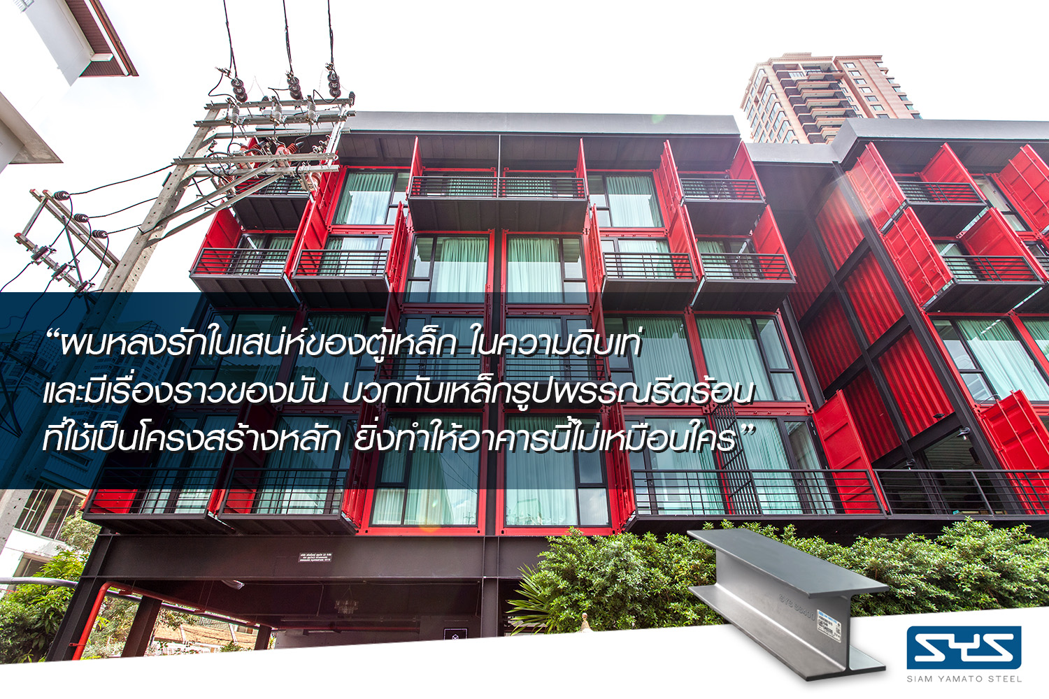 “โครงสร้างเหล็กรูปพรรณรีดร้อน เป็นโครงสร้างหลักที่เราคิดถึงเป็นอันดับแรก เพราะด้วยตัวตู้คอนเทนเนอร์ที่นำมาใช้นั้นก็เป็นเหล็ก มีขนาดที่แน่นอน จึงเหมาะกับเหล็กรูปพรรณรีดร้อนที่เราใช้ ที่สามารถควบคุมมาตรฐาน ขนาด และการตัดประกอบบางส่วนมาจากในโรงงาน งานจึงก่อสร้างได้เร็วและตรงตามความต้องการจริงๆ อีกทั้งยังเกิดข้อผิดพลาดที่หน้างานน้อย เพราะวัสดุมีมาตรฐาน หากได้ช่างก่อสร้างที่ดีด้วยแล้ว จะได้งานที่มีคุณภาพไร้ที่ติเลยก็ว่าได้”