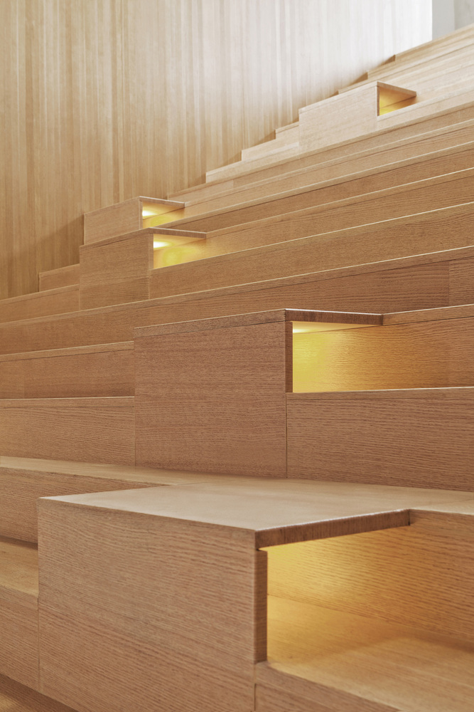 มีการติดตั้งไฟ up-light ไว้ใต้ขั้นบันไดบางขั้น เพื่อสร้างบรรยากาศ