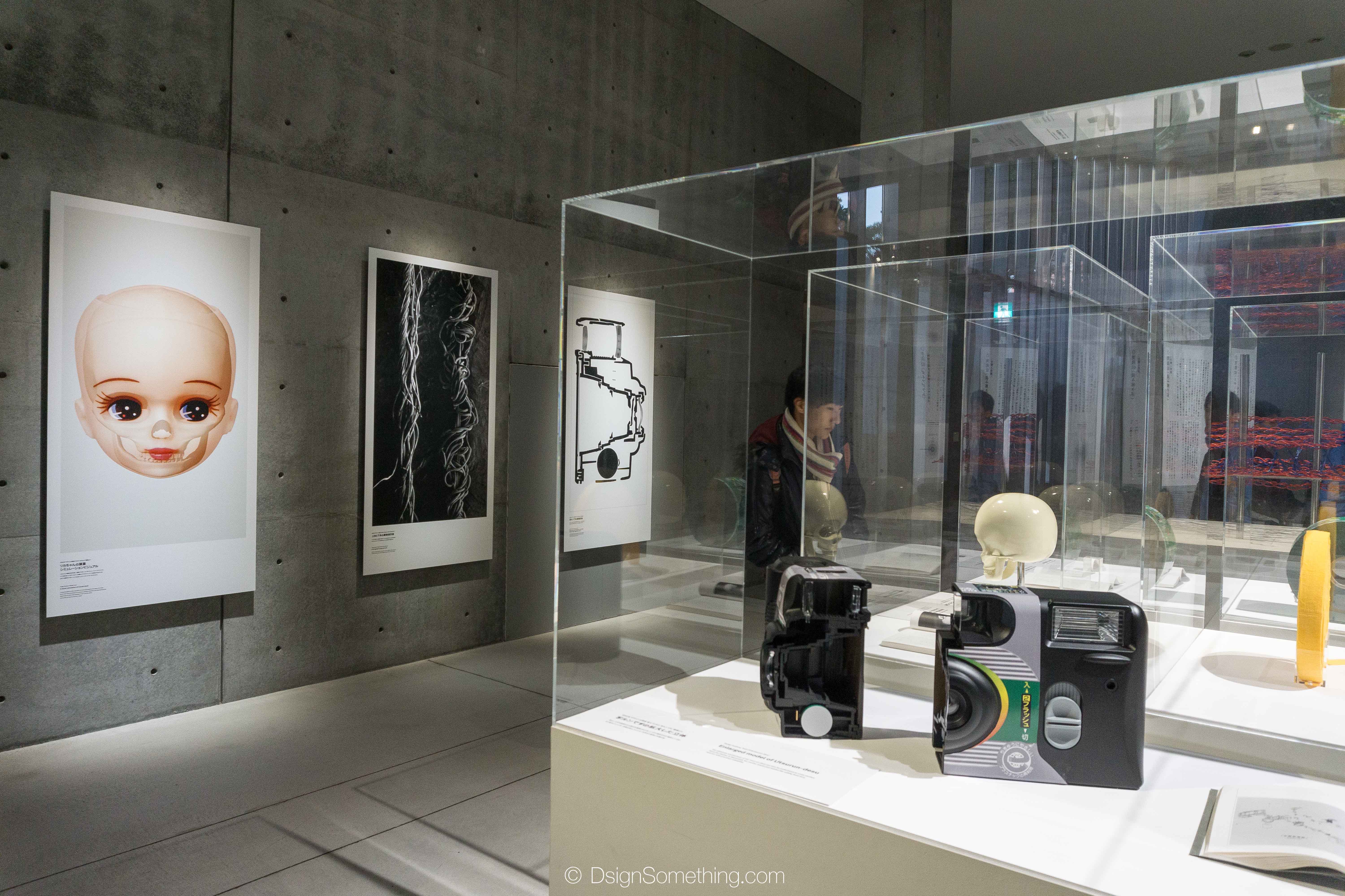 หากเดินเข้ามาภายในอาคารฝั่งขวาจะพบกับเคานเตอร์ขายบัตรเข้าชมงาน และร้านขายของที่ระลึก และเมื่อเดินลงบันไดมาถึงชั้นใต้ดิน จะพบกับคอร์ทสามเหลี่ยมที่ทำหน้าแบ่งส่วนจัดแสดงออกเป็น 2 ห้อง และในช่วงที่เราไปนั้น ก็กำลังจัดแสดงงานในหัวข้อ “Design Anatomy” ซึ่งนำเสนอเรื่องราวการดีไซน์ของผลิตภัณฑ์ที่เราใช้ในชีวิตประวัน ผ่านมุมมองของ Taku Satoh กราฟิกดีไซน์เนอร์ที่มีประสบการณ์การทำงานในบริษัทเมจิ (Meiji) มากว่า 15 ปี โดยเขาได้ยกตัวอย่างเป็นผลิตภัณฑ์ตัวดังๆ ของบริษัทเมจิอย่าง ขนมรูปเห็ดเคลือบช็อคโกแล็ต Kinoko no Yama , Meiji Bulgaria Yogurt , Meiji Essel Super Cup และ Meiji Milk Chocolate มาใช้ในการอธิบาย