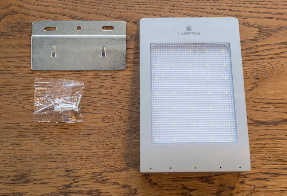 ส่วนการติดตั้งนั้นก็เรียกได้ว่าง่ายมากๆ โดยในกล่องนั้นประกอบด้วยตัวโคมไฟ LED Solar Sensor พร้อมอุปกรณ์ในการติดตั้ง ขั้นตอนง่ายๆเพียง มาร์คจุดที่ต้องการติดตั้ง เจาะรูบนผนังคอนกรีต ฝังพุกพลาสติกและขันสกรูให้เหลือหัวสกรูโผล่ออกมาเล็กน้อยเพื่อทำการแขวนโคมไฟ เท่านี้ก็เป็นอันเสร็จสิ้น