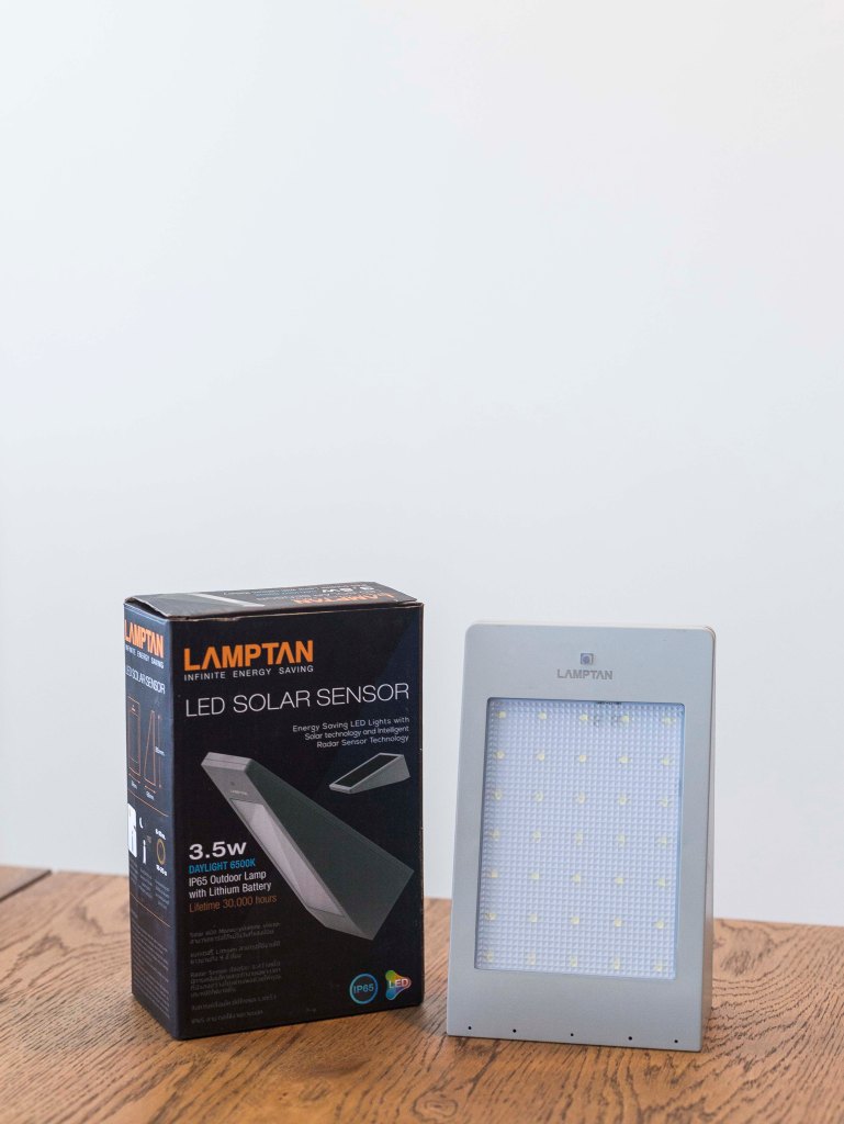 LED Solar Sensor จาก Lamptan เป็นการผสมผสานระหว่างหลอดประหยัดไฟ LED, Solar Panel แบบพิเศษชนิด Monocrystalline Silicon Solar และ Radar Sensor อัจฉริยะ โดยโคมไฟจะเปิด อัตโนมัติเมื่อมีการเคลื่อนไหว และจะทำงานเฉพาะเวลาที่มีแสงสว่างไม่เพียงพอเท่านั้น ซึ่งจะช่วยประหยัดไฟฟ้าได้เป็นอย่างดี เพราะใช้ไฟจากแบตเตอรี่ Lithium และสามารถใช้งานได้ยาวนานถึง 9 ชั่วโมง ต่อการชาร์จ 1 ครั้ง