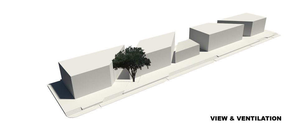 ผู้ออกแบบอาคารนี้คือ Office AT โดย คุณสุรชัย เอกภพโยธิน และคุณจุฑาทิพย์ เตชะจำเริญ มีแนวคิดที่จะเก็บต้นไม้ใหญ่เดิมไว้ เพื่อให้ร่มเงาและสร้างพื้นที่ที่น่าสนใจ บนพื้นที่ใช้สอยประมาณ 850 ตารางเมตร ประกอบด้วย 4 ร้านค้า โดยออกแบบแยกเป็น 4 ก้อนอาคาร เพื่อเพิ่มพื้นที่หน้าร้านให้กับทุกๆ ร้านให้มากขึ้น แต่ละก้อนอาคารนั้น มีชั้นลอยเป็นของตัวเอง เป็นพื้นที่ในการนั่งรับประทานอาหาร และเพิ่มความน่าสนใจของแมสอาคารด้วย