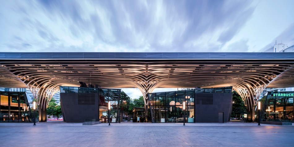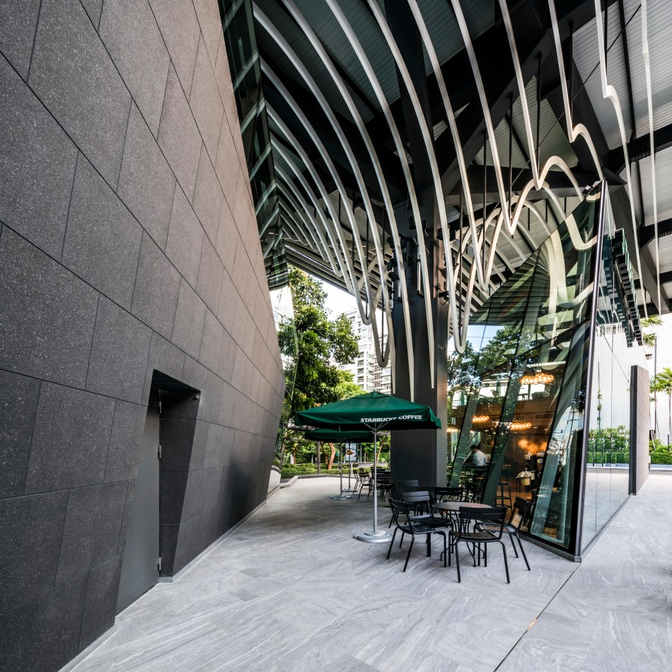 เพื่อการเป็นอาคารไอคอนของถนนเส้นนี้ สถาปนิกคิดถึงภาพจำของเราเกี่ยวกับถนนวิทยุ สิ่งที่คนคุ้นเคยคือต้นไม้ใหญ่ ที่แผ่กิ่งก้านให้ร่มเงาถนนเส้นนี้มานาน สถาปนิกจึงนำรูปทรงของต้นไม้ใหญ่มาเป็นรูปแบบของหลังคาที่จะปกคลุมอาคารทั้ง 4 ก้อนนี้