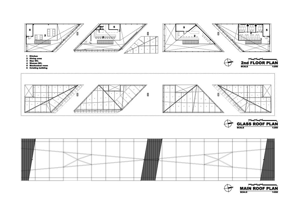 แต่สุดท้าย มีการปรับเรื่องระดับความสูงทั้งหมดของตัวอาคาร และให้ยกอาคารสูงขึ้นทั้งหมด ทำให้สิ่งที่คิดว่าจะเป็นปัญหาเรื่องต้นไม้กับหลังคาหมดไป… กลับไปที่เรื่องโครงสร้างหลังคารูปตัวเอ็กซ์ กลับกลายเป็นสิ่งที่ดี เพราะโครงหลังคาที่เป็นรูปกากบาทนั้น จะแข็งแรงกว่าแบบธรรมดาที่วิ่งตรงและตั้งฉากกัน ทีมสถาปนิกและวิศวกรจึงคงรูปแบบหลังคาแบบนี้ไว้ โดยที่ไม่ได้เว้นช่องให้ต้นไม้แล้ว