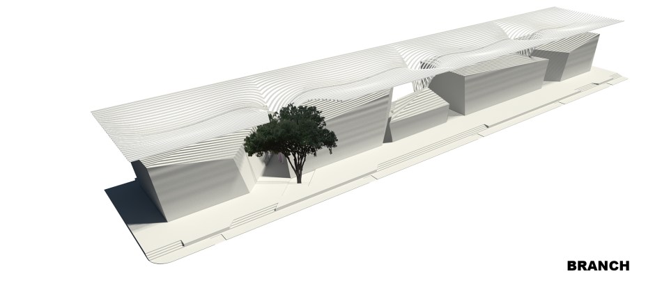เพื่อการเป็นอาคารไอคอนของถนนเส้นนี้ สถาปนิกคิดถึงภาพจำของเราเกี่ยวกับถนนวิทยุ สิ่งที่คนคุ้นเคยคือต้นไม้ใหญ่ ที่แผ่กิ่งก้านให้ร่มเงาถนนเส้นนี้มานาน สถาปนิกจึงนำรูปทรงของต้นไม้ใหญ่มาเป็นรูปแบบของหลังคาที่จะปกคลุมอาคารทั้ง 4 ก้อนนี้