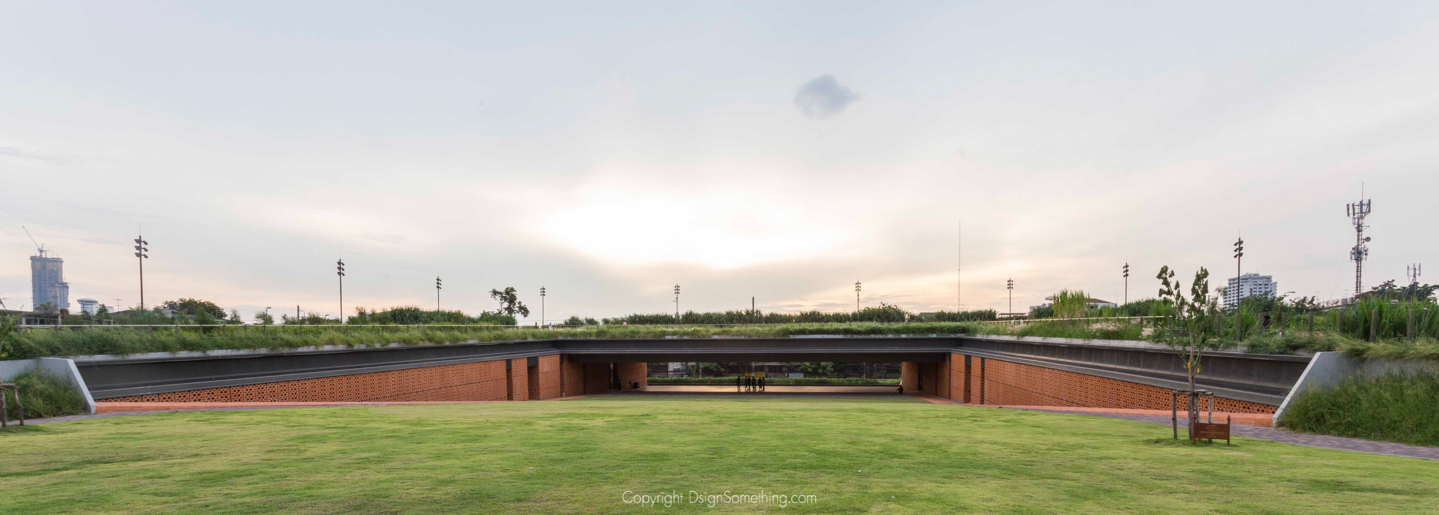 อาคารอเนกประสงค์ขนาดใหญ่ในอุทยานจุฬาฯ 100 ปี ที่ตั้งอยู่ฝั่งถนนบรรทัดทอง เมื่อมองระยะไกลดูเหมือนจะซ่อนตัวอยู่ใต้เนินดินหรือหลังคา green roof ที่ถูกปกคลุมด้วยภูมิทัศน์สีเขียวขจี ทำให้รู้สึกถึงความถ่อมตัวและนอบน้อม แต่เมื่อได้ย่างเข้าสู่พื้นที่ของตัวอาคารแล้วล่ะก็ จะสัมผัสได้ถึงพลังของช่องเปิดอาคารขนาดใหญ่โครงสร้างไร้เสาที่ยาวถึง 40 เมตรเลยทีเดียว