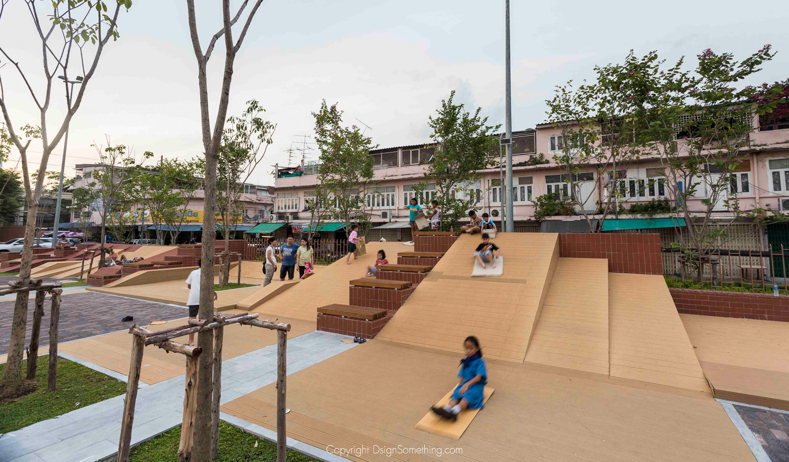 มีการใช้วัสดุคอนกรีตรูพรุน(porous concrete) แทนการใช้คอนกรีตปกติที่น้ำไม่สามารถซึมผ่านไปได้ ซึ่งนอกจากนี้คนในชุมชนยังสามารถเป็นส่วนหนึ่งในการช่วยดูแลน้ำได้ ด้วยการปั่นจักรยานเพิ่มออกซิเจนให้แหล่งน้ำ ที่ออกแบบเป็น “กังหันน้ำชัยพัฒนา” หนึ่งในโครงการพระราชดำริของรัชกาลที่ 9 ที่ช่วยบำบัดน้ำเสียอีกด้วย
