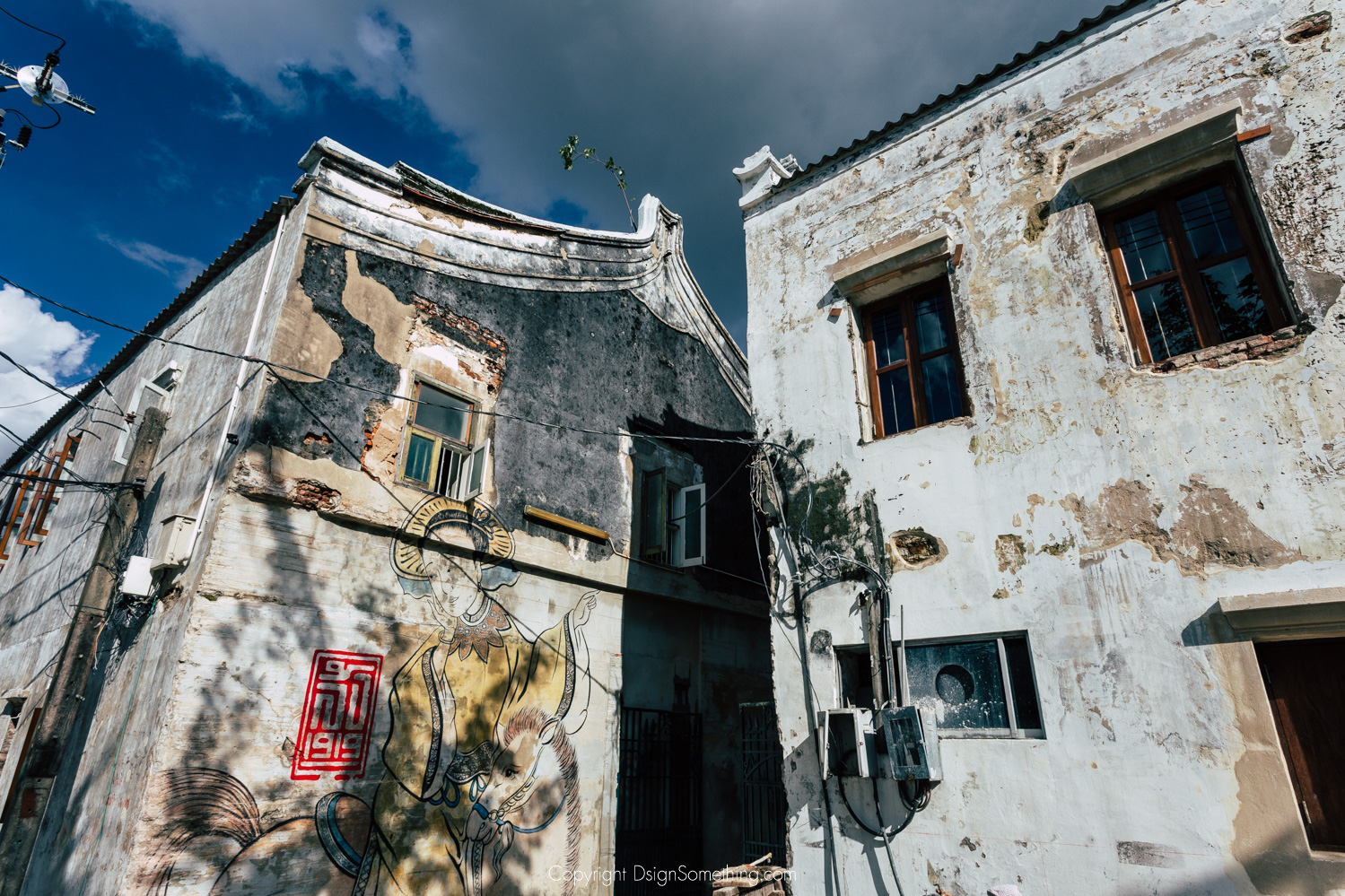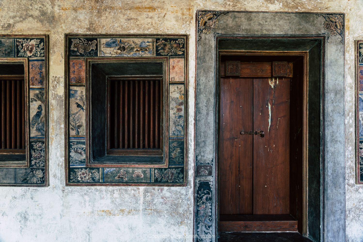 นอกจากสถาปัตยกรรมอันงดงามที่เป็นตัวบอกเล่าประวัติศาสตร์พื้นที่ได้เป็นอย่างดีแล้ว ยังมีความงดงามของภาพจิตรกรรมฝาผนังที่ซ่อนตัวอยู่ภายใต้สีที่ฉาบทับไว้บนวงกบหน้าต่างและประตูทุกๆบาน ซึ่งเป็น ‘ความบังเอิญในขั้นตอนล้างสีอาคาร’ ที่เผยภาพวิถีชีวิตและเรื่องราวจากนวนิยายจีนโบราณอายุเก่าแก่มากกว่า 167 ปี