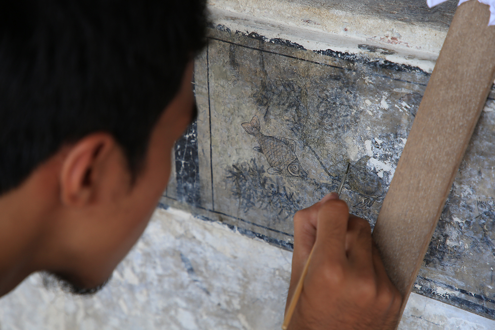 - เสริมความมั่นคงให้กับชั้นปูน โดยปูนน้ำอ้อยจากธรรมชาติ เพื่อให้ง่ายต่อการเขียนซ่อม