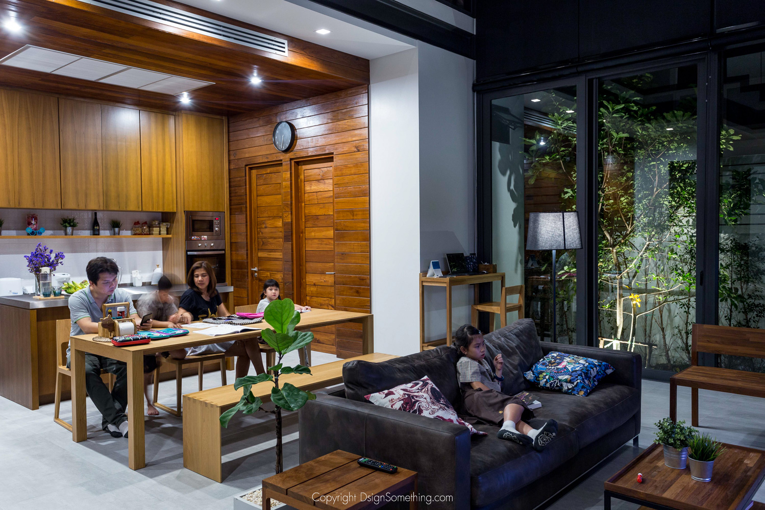 เมื่อเข้ามาภายในบ้าน จะพบกับห้องนั่งเล่นขนาดใหญ่เป็นdouble space เชื่อมต่อเสปซด้วยกันระหว่างชั้น 1 และ ชั้น 2 ข้างหน้าห้องนั่งเล่นเป็นโซฟาขนาดใหญ่ที่คุณพ่อและคุณแม่ จะพาลูกๆมานั่งดูทีวีหรือทำกิจกรรมเพื่อใช้เวลาร่วมกัน ภายในห้องนั่งเล่นจะเป็น open plan ที่เชื่อมต่อไปยังเค้าน์เตอร์สำหรับทำอาหารและโต๊ะทานข้าวได้โดยตรง