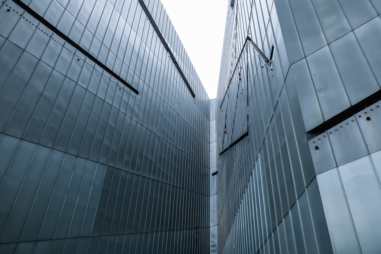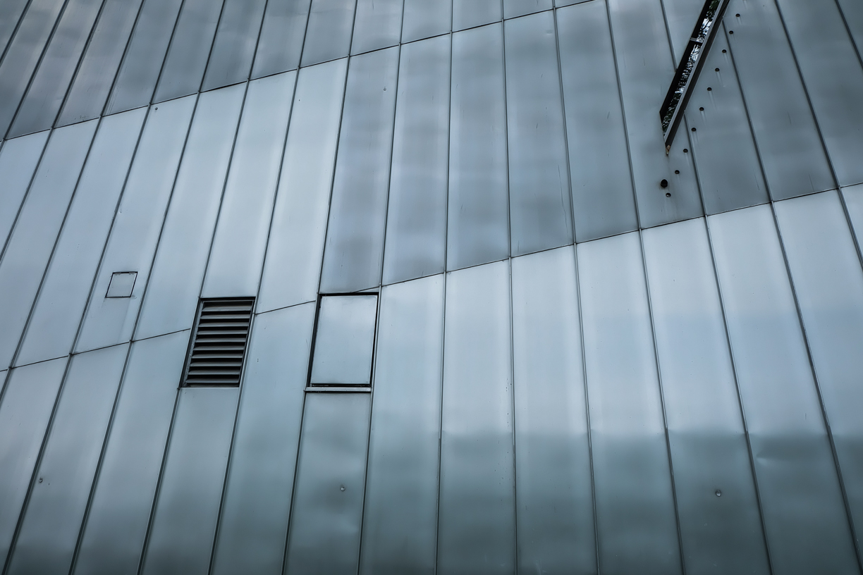 จากการใช้วัสดุจากอะลูมิเนียม–ซิงค์ รูปลักษณ์ของอาคารจึงดูทึบและตัน และด้วยลักษณะของวัสดุก่อให้เกิดความรู้สึกที่เย็นยะเยือก ไร้ชีวิตจิตใจ ส่วนภายในอาคารใช้คอนกรีตในการตกแต่งผนัง ก็ช่วยเพิ่มความรู้สึกให้สเปซดูทึบ ตัน และอึดอัดได้เช่นเดียวกันกับการใช้จากอะลูมิเนียม–ซิงค์
