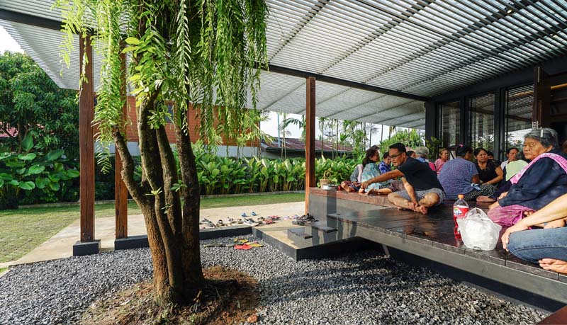 รูปทรงหลังคาเป็นทรงจั่วเป็นการสื่อสารกับบริบทรอบข้าง ทำให้รู้สึกถึงการต้อนรับและเปิดรับเพื่อนบ้านและแขกผู้มาเยือน