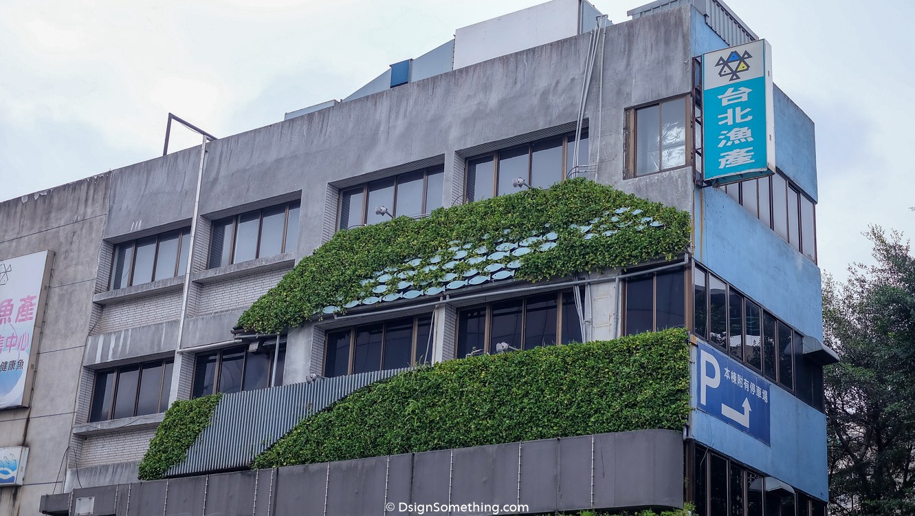 Green Wall รูปปลาตัวใหญ่ ซึ่งเป็น Façade ของตลาดปลาชื่อดังในไทเป