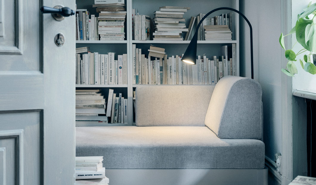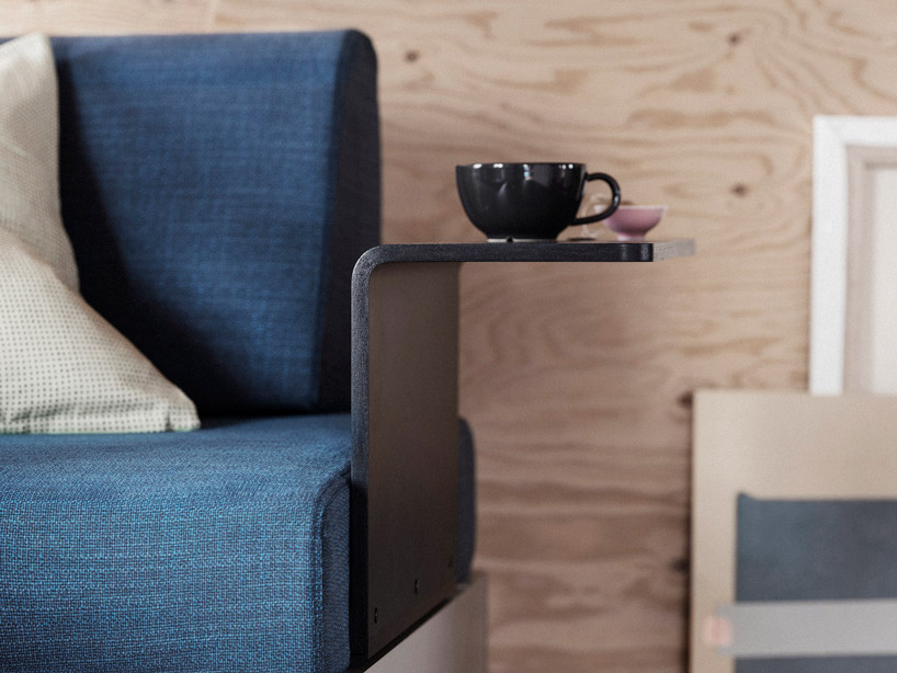 โซฟามีทั้งหมดสามขนาดด้วยกัน ออกแบบเป็นแพลตฟอร์มเรียบๆที่ให้ผู้ใช้งานสามารถต่อเติมหรือเคลื่อนย้ายพนักพิง ที่วางแขน โต๊ะวางของขนาดเล็ก หรือแม้กระทั่งโคมไฟ เพื่อรองรับความแตกต่างของรูปแบบกิจกรรมในแต่ละวันและลักษณะนิสัยในการนั่ง การนอนของสมาชิกแต่ละคนในครอบครัวที่ไม่เหมือนกันได้อย่างลงตัว เช่น การเปลี่ยนรูปแบบโซฟาธรรมดา ให้เป็นพื้นที่ที่สามารถนอนเล่นอ่านหนังสือ จิบกาแฟได้ด้วยการเพิ่มโต๊ะวางถ้วยกาแฟ ใส่ โคมไฟ และย้ายพนักพิงจากแนวยาวมาในแนวกว้าง