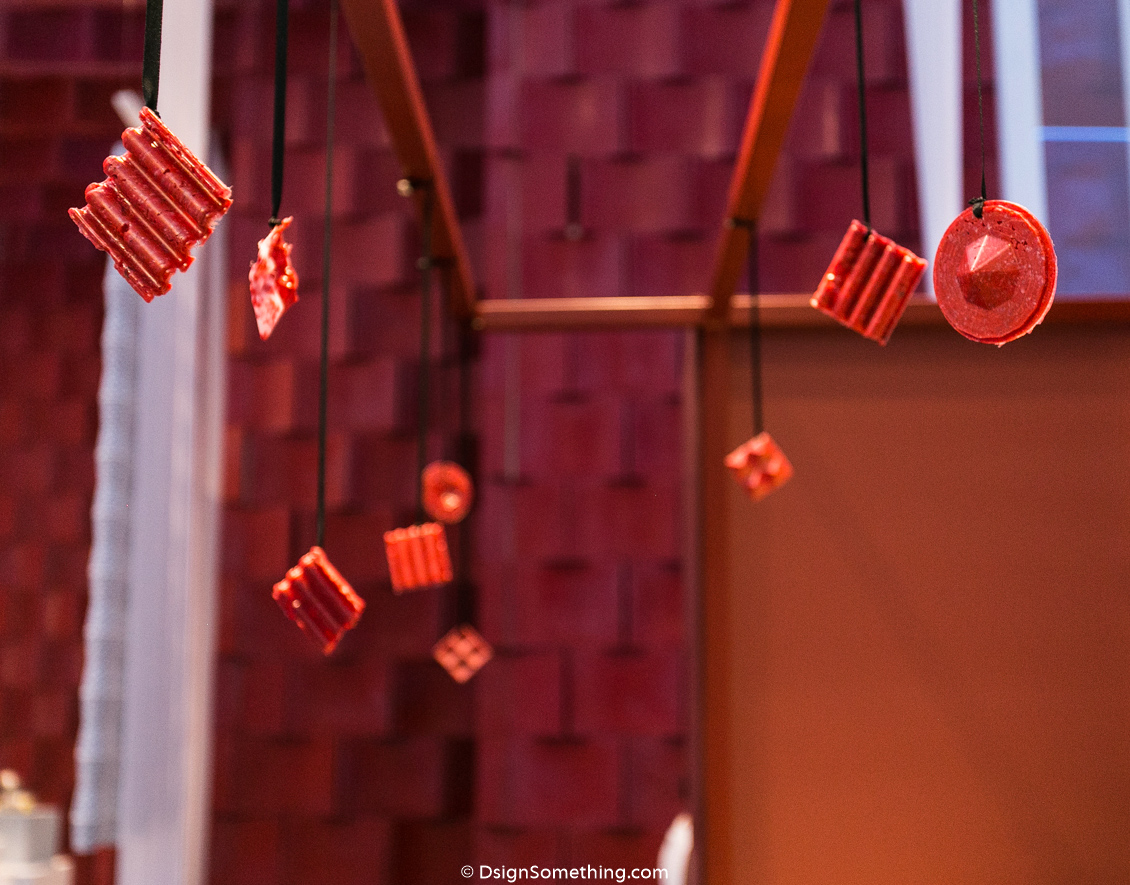 โมบายแขวนทรงขนมไทย ที่แปรรูปมาจากเม็ดพลาสติก โดยผ่านเครื่อง Respawn ซึ่งเป็นหนึ่งในการแปรรูปจากขยะพลาสติกมาเป็นงานศิลปะที่สวยงามได้