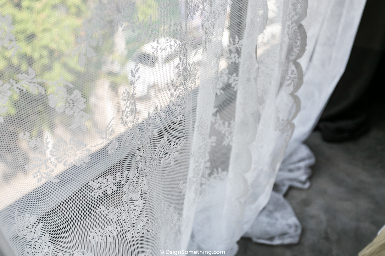 ผ้าม่านที่ทำจากผ้าลูกไม้ ซึ่งเต็มไปด้วยรายละเอียดและความประณีต ทำให้เราย้อนนึกถึงบ้านในสมัยก่อนขึ้นมาทันที