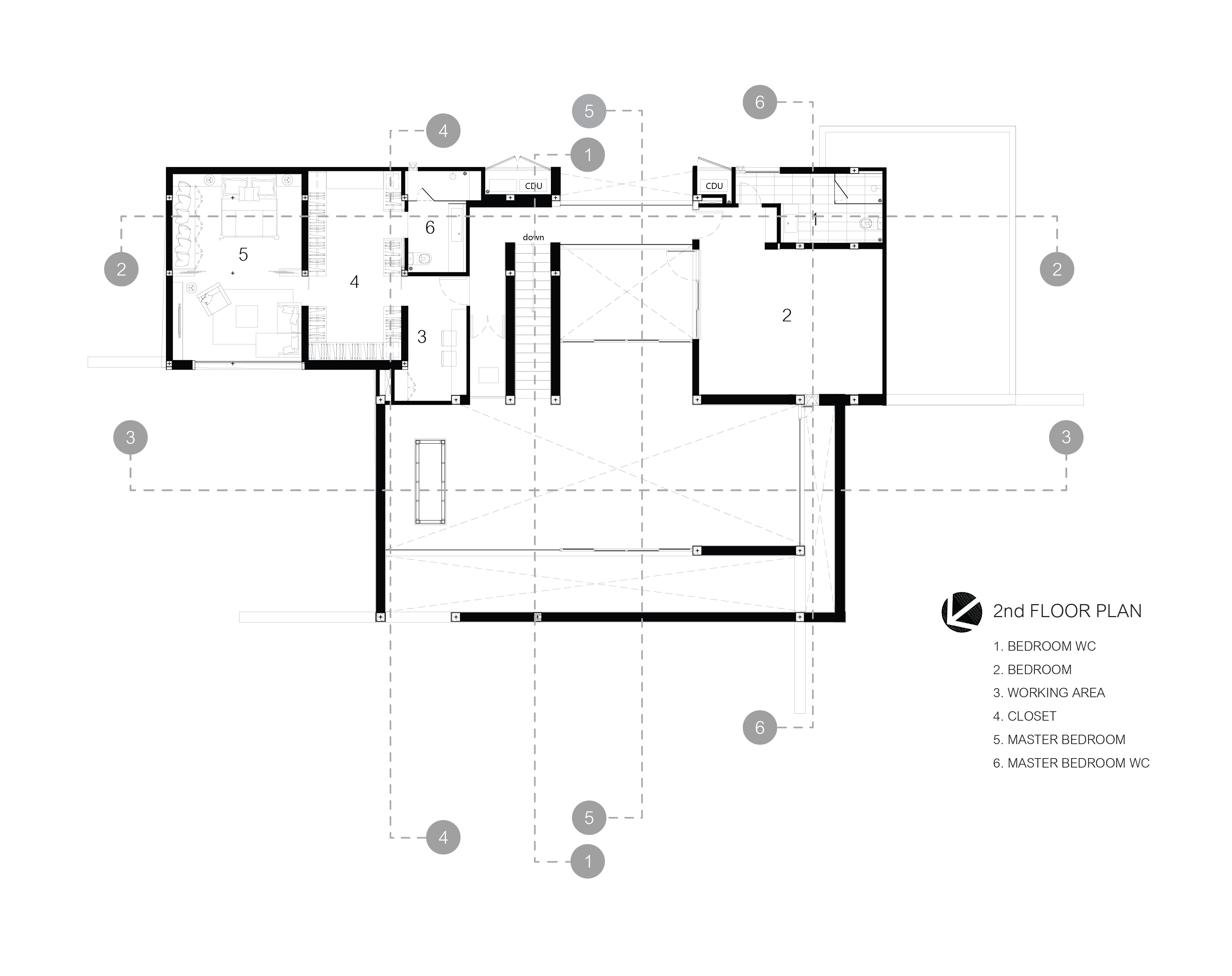 พื้นที่บริเวณชั้น 2 ประกอบด้วยห้องนอน 2 ห้อง และห้องทำงานซึ่งอยู่ในส่วนของ Master Bedroom และมีทางเชื่อมระหว่างห้องนอนทั้งสองห้อง