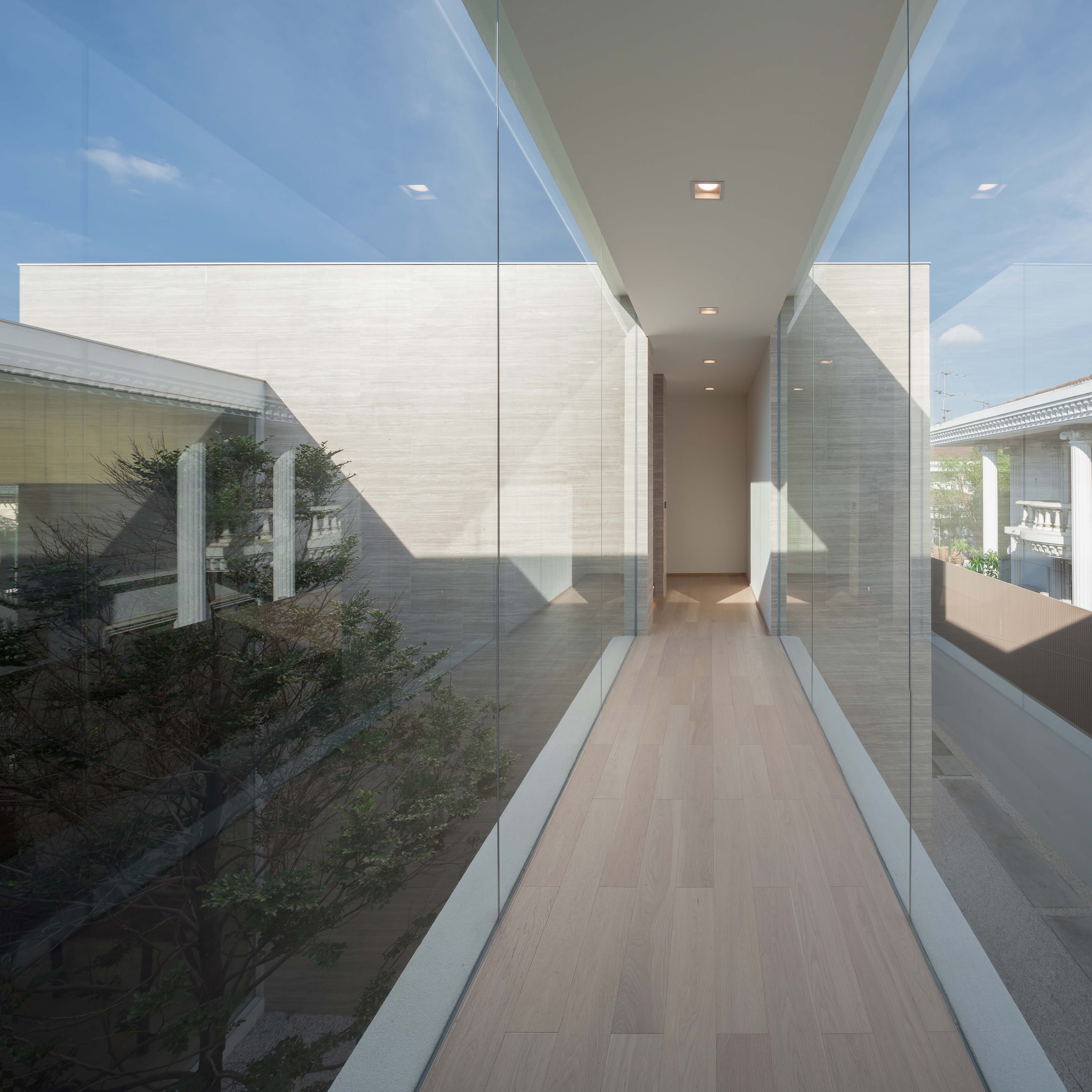 ทางเชื่อมระหว่างห้องนอนทั้ง 2 ห้อง เป็นโครงสร้างไร้เสา และใช้กระจกเป็นผนังทั้งหมด