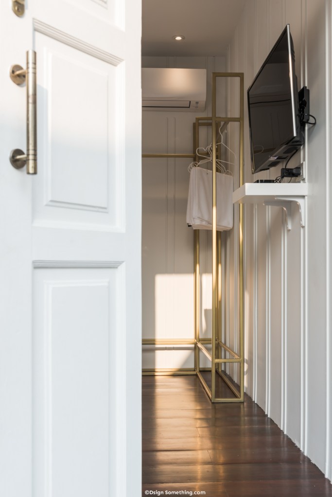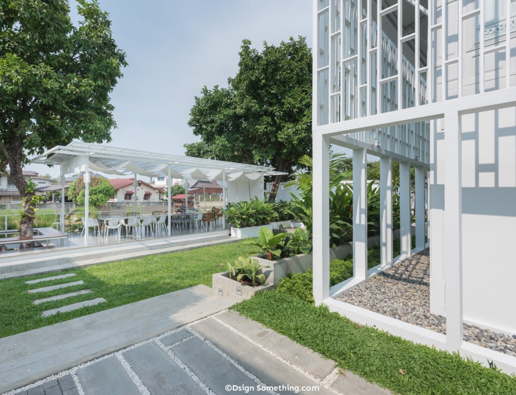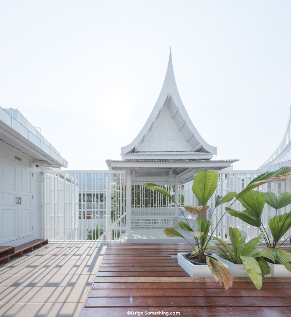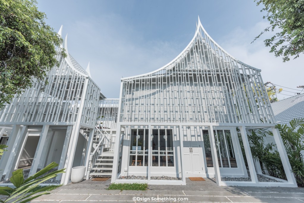 ภายนอกที่พักจะรู้สึกถึงความเรียบง่ายด้วยสีขาวสะอาดตา แต่เมื่อได้ลองเดินเข้ามาข้างในแล้วจะรู้สึกราวกับได้ย้อนอดีตไปในสมัยก่อน จากรายละเอียดของสถาปัตยกรรมที่สื่อถึงองค์ประกอบของเรือนไทยรวมถึงพื้นที่ และองค์ประกอบหลายอย่างที่คงแบบเรือนไทยไว้ เป็นการเล่นกับห้วงเวลาในสถาปัตยกรรมได้อย่างน่าสนใจ