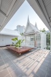 ชานบ้าน – เรือนไทยเปรียบดั่งวิถีชีวิตคนไทยในสมัยก่อน มีชานกลางบ้านที่ผู้พักอาศัยจะมานั่งรับประทานอาหารและใช้เวลาอยู่ร่วมกัน ส่วนห้องนอน ห้องน้ำ และห้องต่างๆจะถูกแยกกันอย่างชัดเจน สถาปนิกจึงนำรูปแรบบกาใช้งานเช่นนี้มาใช้ ด้วยการให้มีชานกลางบ้านเป็นพื้นที่ส่วนกลางและนั่งเล่นของผู้เข้าพัก มีห้องน้ำรวมซึ่งแยกตัวออกมาจากห้องนอน