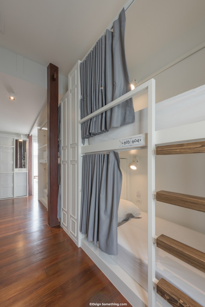 ห้องพักแบบ 8 เตียงและ 6 เตียง โดยแต่ละเตียงถูกออกแบบมาให้มีพื้นที่ส่วนตัว มีที่เก็บของซ่อนอยู่ริเวณหัวเตียง และยังมีม่านกั้นระหว่างเตียงเพื่อความปลอดภัยและเป็นส่วนตัวของผู้เข้าพักอีกด้วย