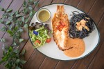 เส้นใหญ่อยุธยา ซัลซ่ากุ้ง โฮมเมดซอสต้มยำ 130 บาท, สปาเกตตี้ ผัดไทยกุ้งสด 165 บาท, กุ้งแม่น้ำย่าง สไตล์บุษบา 950 บาท
