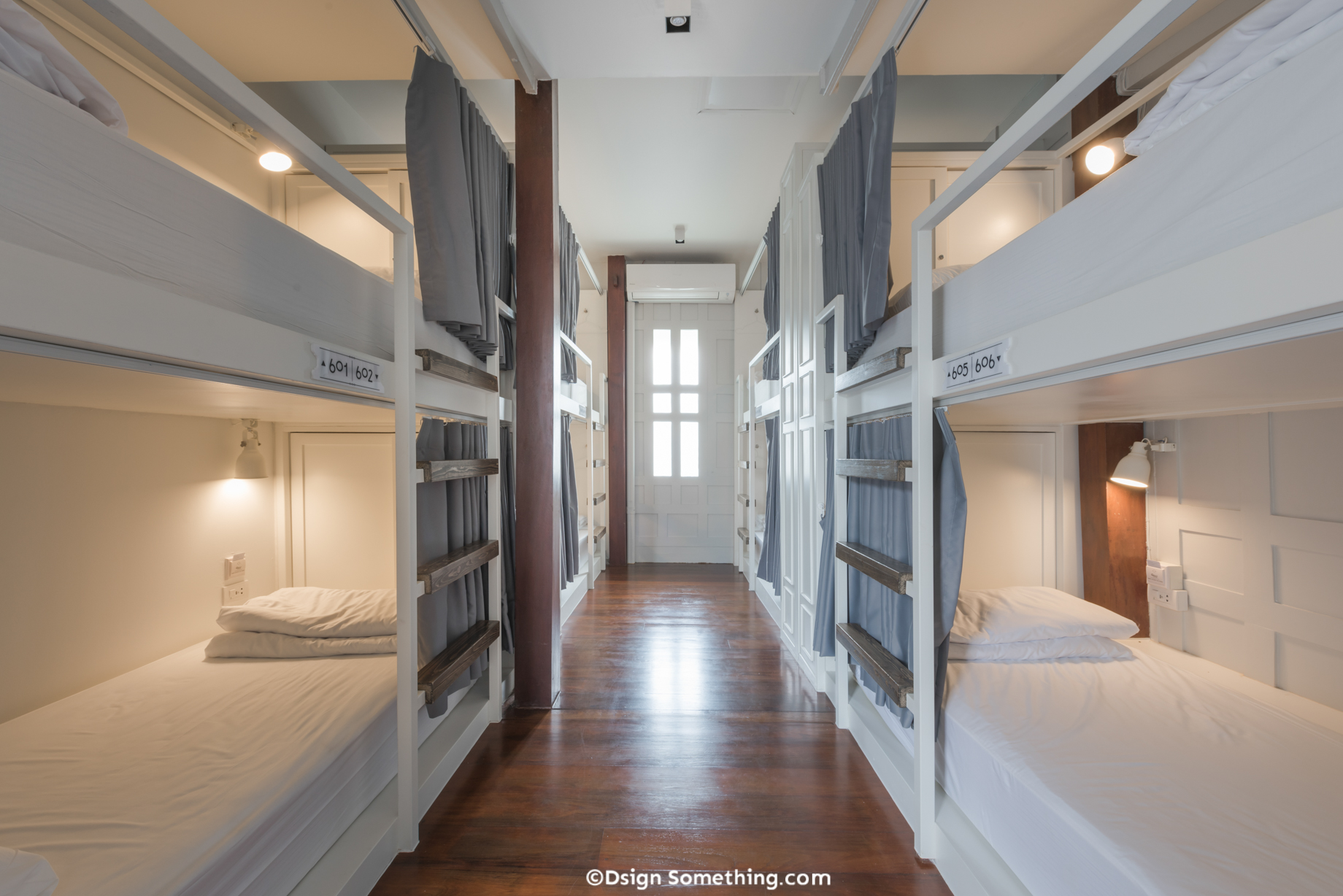 ห้องพักแบบ 8 เตียงและ 6 เตียง โดยแต่ละเตียงถูกออกแบบมาให้มีพื้นที่ส่วนตัว มีที่เก็บของซ่อนอยู่ริเวณหัวเตียง และยังมีม่านกั้นระหว่างเตียงเพื่อความปลอดภัยและเป็นส่วนตัวของผู้เข้าพักอีกด้วย