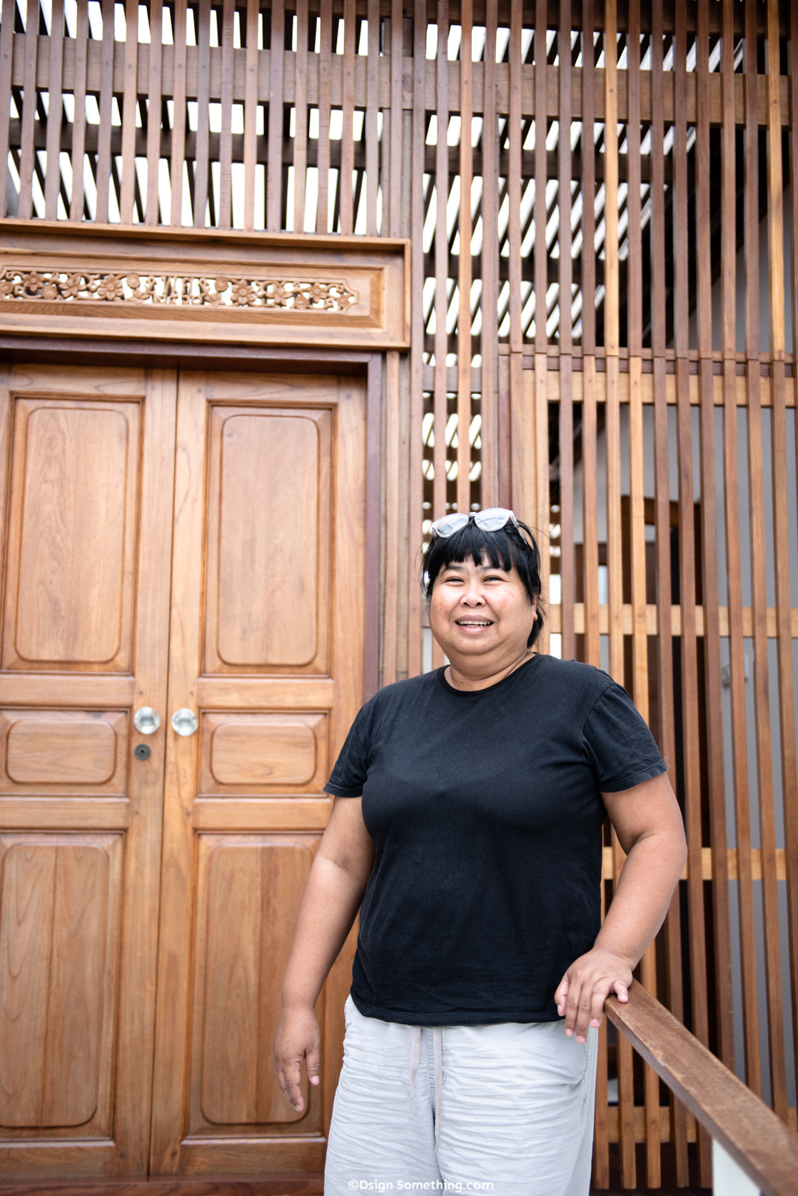 คุณป่องเล่าถึงแนวคิดที่ตั้งใจวางเรือนไทยให้เป็นเรือนประธานตรงกลางชั้นสองของบ้านที่ถูกห้อมล้อมด้วยระแนงไม้โดยรอบ ซึ่งทางเข้าเรือนไทยนั้นมีเพียงทางเดียว คือต้องเข้าจากพื้นที่ของครอบครัว เพราะถือว่าเป็นห้องพระ เป็นหัวใจสำคัญของบ้านหลังนี้