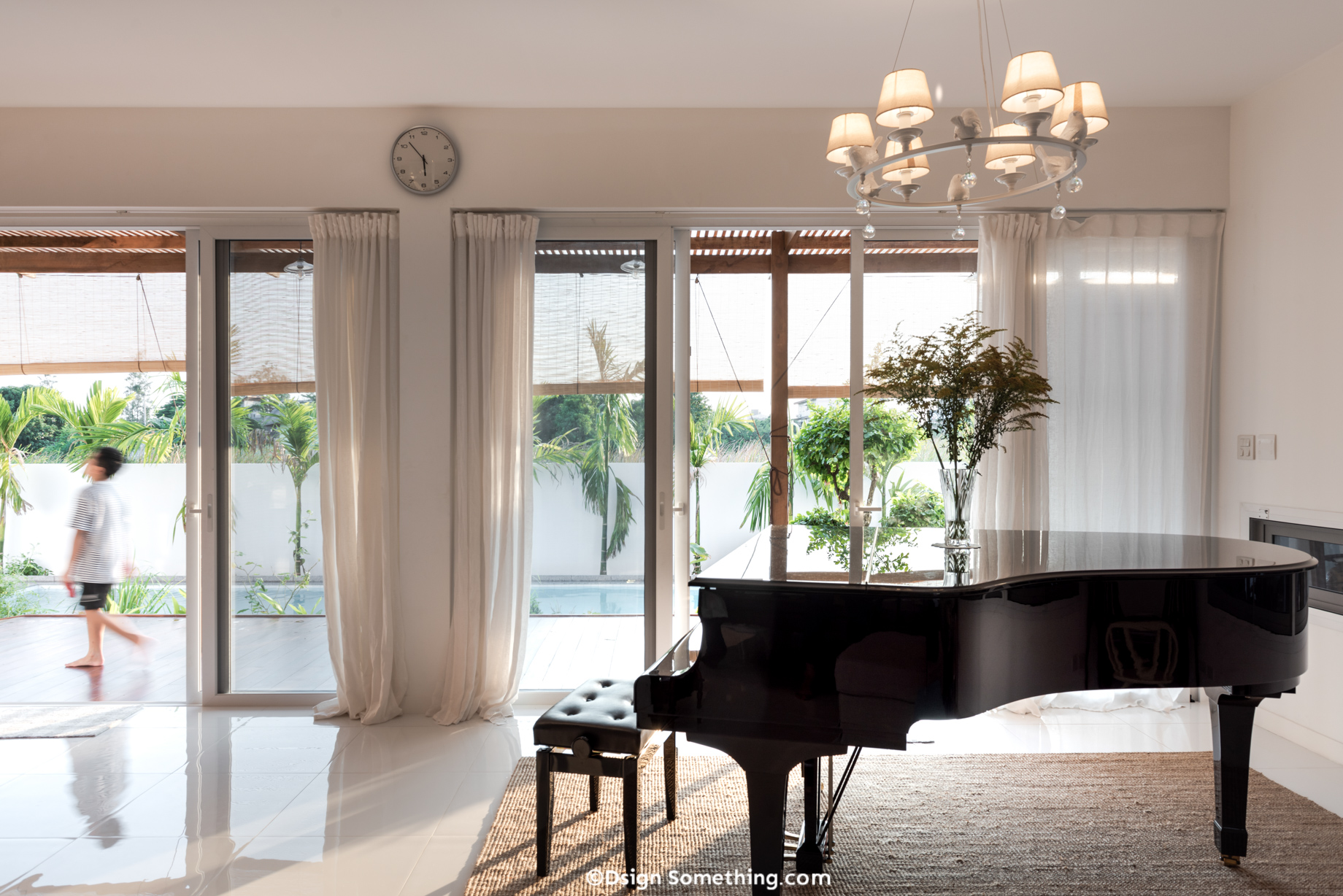 อีกหนึ่งพฤติกรรมการอยู่อาศัยของครอบครัวนี้ คือจะมีผู้ที่ผลัดเปลี่ยนแวะเวียนกันมาบ่อยๆ ไม่ว่าจะเป็นญาติ หรือเพื่อนคุณป่องเอง พื้นที่แห่งนี้จึงต้องออกแบบให้มีพื้นที่รองรับผู้มาเยือน อย่างห้องนอนรับรองแขก และพื้นที่Community สำหรับปาร์ตี้ มี Pantry ขนาดย่อมเพื่อทำอาหาร โต๊ะทานข้าว แกรนด์เปียโน ที่มีผนังกระจกใสในฝั่งทิศตะวันตกสามารถเปิดโล่งเพื่อเชื่อมต่อไปยังสระว่ายน้ำได้