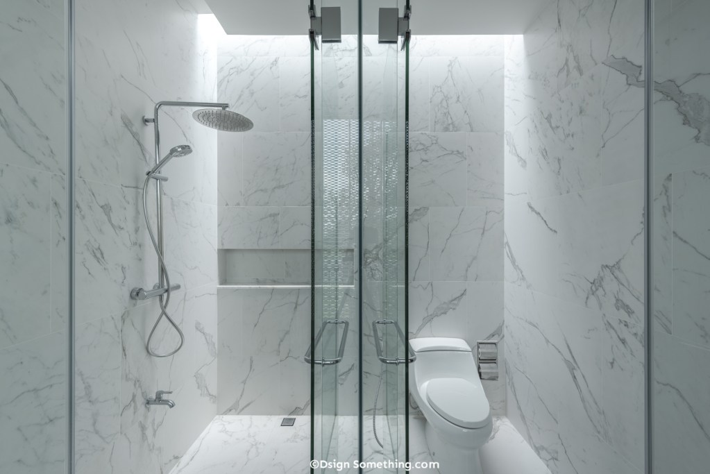 ภายในห้องน้ำมีการเจาะช่อง Sky Light ให้แสงธรรมชาติส่องลงมาตอนกลางวัน นอกจากจะช่วยให้ผู้ใช้งานไม่รู้สึกอึดอัดแล้ว แสงที่ส่องลงมายังช่วยฆ่าเชื้อโรคในห้องน้ำ ทำให้ห้องน้ำน่าใช้งานและสะอาดมากขึ้นอีกด้วย