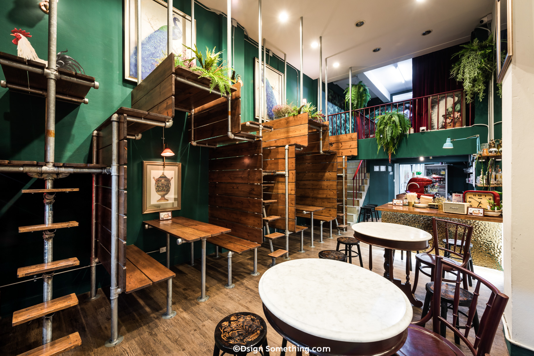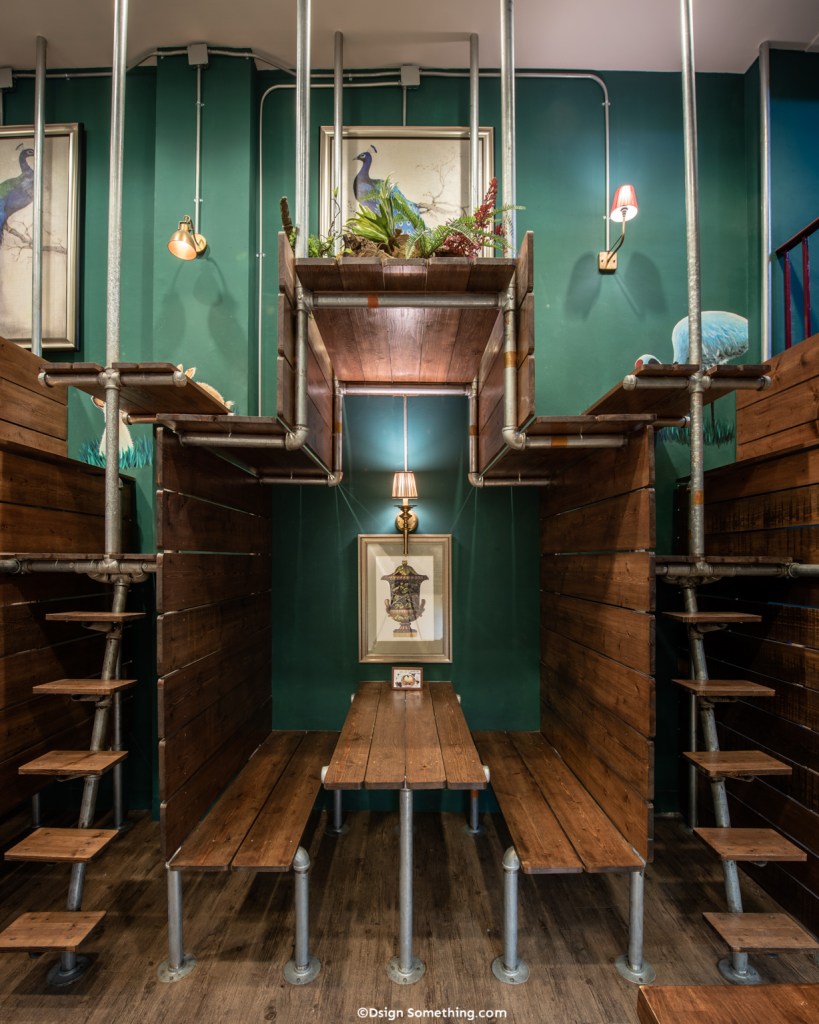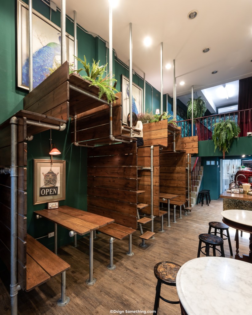ซึ่งการที่เพิ่มพื้นที่สีเขียวระหว่างที่นั่งบนชั้นสอง เป็นเหมือนการสร้างพื้นที่เล็กๆขึ้นมาเพื่อขั้นขอบเขตระหว่างโต๊ะ ทำให้ลูกค้าที่นั่งด้านบนแต่ละโต๊ะรู้สึกมีความเป็นส่วนตัว และช่วยสร้างบรรยากาศที่ดีภายในร้านมากขึ้น