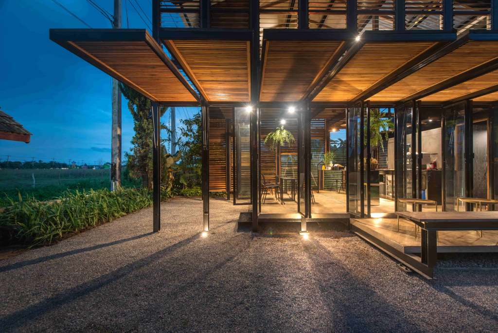 ท่ามกลางสภาพแวดล้อมที่อุดมไปด้วยธรรมชาติในอำเภอนางแล จังหวัดเชียงราย พื้นที่ซึ่งยังคงวิถีชีวิตแบบดั้งเดิมและอยู่ร่วมกับการพัฒนาเมืองใกล้มหาวิทยาลัยแม่ฟ้าหลวงกำลังเติบโตพร้อมๆกัน ยังมี “Pasang (ป่าซาง)” คาเฟ่เล็กๆที่ซ่อนตัวอยู่ในหมู่บ้านเศรษฐกิจพอเพียง ผ่านฝีมือการออกแบบของคุณป้อง-บดินทร์ เมืองลือ และคุณว่าน-พิชชาภา โล่ห์ทอง สองสถาปนิกหนุ่มสาวจาก BodinChapa Architects ได้สร้างสรรค์สถาปัตยกรรมโครงสร้างเหล็กดีไซน์ร่วมสมัย และคงความพื้นถิ่นจากวัสดุที่หาได้ง่ายในพื้นที่