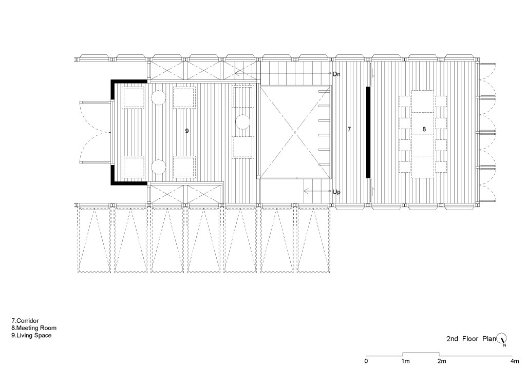 ถัดขึ้นไปเป็นพื้นที่ Co-Working Space พื้นที่นั่งทำงาน 4 โต๊ะ สำหรับรองรับการใช้งานของนักศึกษา หรือคนทำงาน ซึ่งสามารถเปลี่ยนแปลงได้เอง สามารถเคลื่อนย้ายโต๊ะได้ตามต้องการ ส่วนระดับบนสุดเป็นมุมนั่งเล่น มีเก้าอี้โซฟา ที่เน้นการดื่มด่ำบรรยากาศสบายๆ เห็นวิว เห็นทุ่งนา