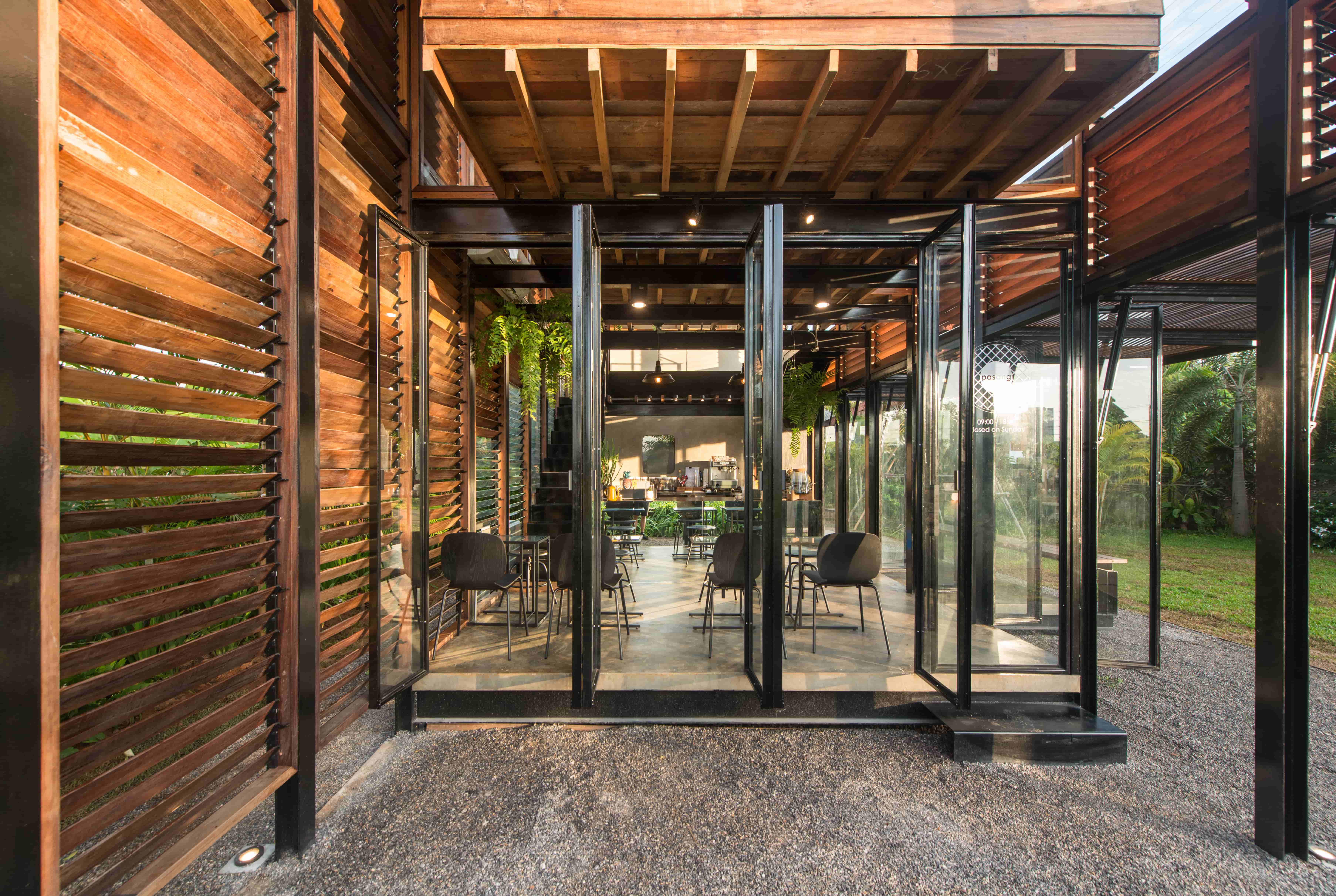 ท่ามกลางสภาพแวดล้อมที่อุดมไปด้วยธรรมชาติในอำเภอนางแล จังหวัดเชียงราย พื้นที่ซึ่งยังคงวิถีชีวิตแบบดั้งเดิมและอยู่ร่วมกับการพัฒนาเมืองใกล้มหาวิทยาลัยแม่ฟ้าหลวงกำลังเติบโตพร้อมๆกัน ยังมี “Pasang (ป่าซาง)” คาเฟ่เล็กๆที่ซ่อนตัวอยู่ในหมู่บ้านเศรษฐกิจพอเพียง ผ่านฝีมือการออกแบบของคุณป้อง-บดินทร์ เมืองลือ และคุณว่าน-พิชชาภา โล่ห์ทอง สองสถาปนิกหนุ่มสาวจาก BodinChapa Architects ได้สร้างสรรค์สถาปัตยกรรมโครงสร้างเหล็กดีไซน์ร่วมสมัย และคงความพื้นถิ่นจากวัสดุที่หาได้ง่ายในพื้นที่