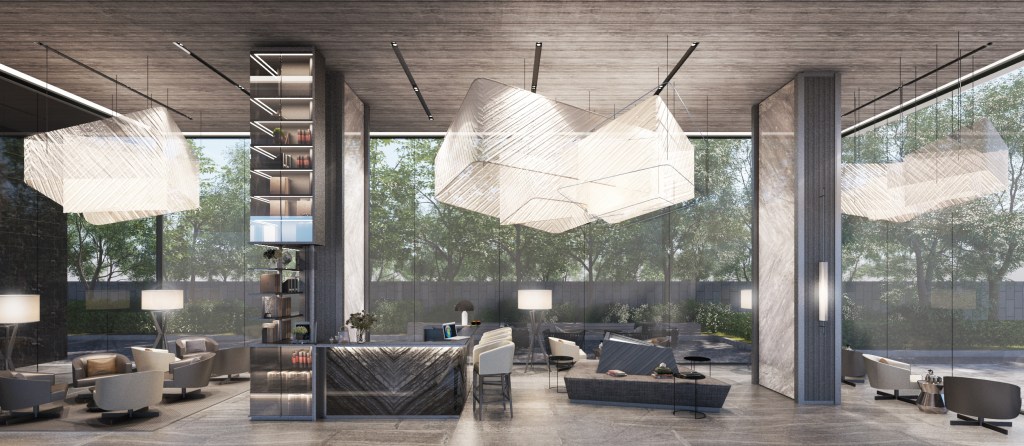 ต้อนรับเข้าสู่บริเวณ Grand Lobby ด้วยการออกแบบ Space แบบ Double Volume ให้ความรู้สึกพิเศษในทุกๆ ก้าว แต่ความโปร่งโล่งของสเปซนั้นจำเป็นต้องมีเฟอร์นิเจอร์และของตกแต่งสเกลใหญ่เพื่อสร้างความสมดุลให้กับภาพรวม เพราะหากเฟอร์นิเจอร์มีขนาดเล็กเกินไปจะถูกสเปซข่ม ส่งผลให้พื้นดูไม่ลักชัวรีอย่างที่ควรจะเป็น