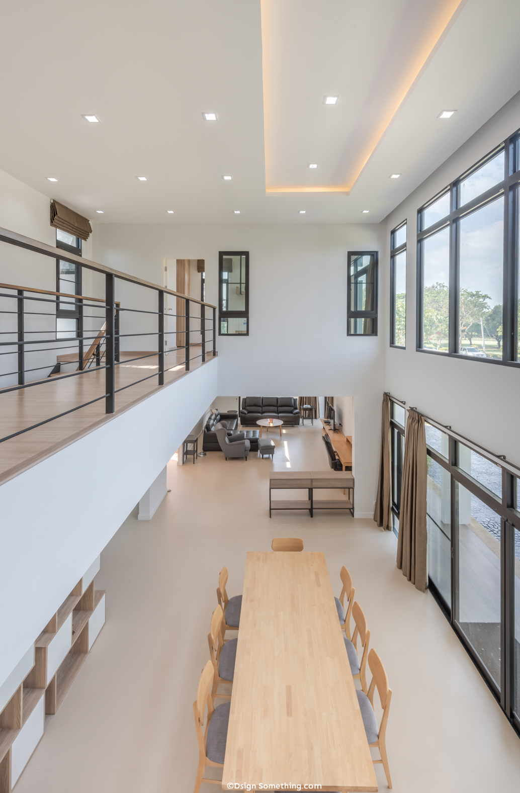 Section แสดงพื้นที่ภายในบ้านแบบ Double Space ทำให้ภายในบ้านโปร่งโล่ง
