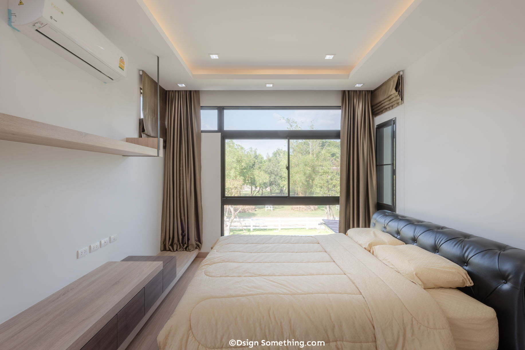 อย่างกระจกเข้ามุมที่สถาปนิกออกแบบไว้ในห้องนอนด้านหน้าของบ้าน ตั้งใจออกแบบเพื่อเปิดสู่ธรรมชาติภายนอกได้อย่างเต็มที่ ก็ออกมาสวยงามลงตัว ไม่ต้องกังวลเรื่องของความรั่วซึมเพราะด้วยมาตรฐานจากญี่ปุ่น ทำให้ TOSTEM เป็นบานประตูหน้าต่างที่เหมาะกับการใช้งานกับบ้านหลังนี้