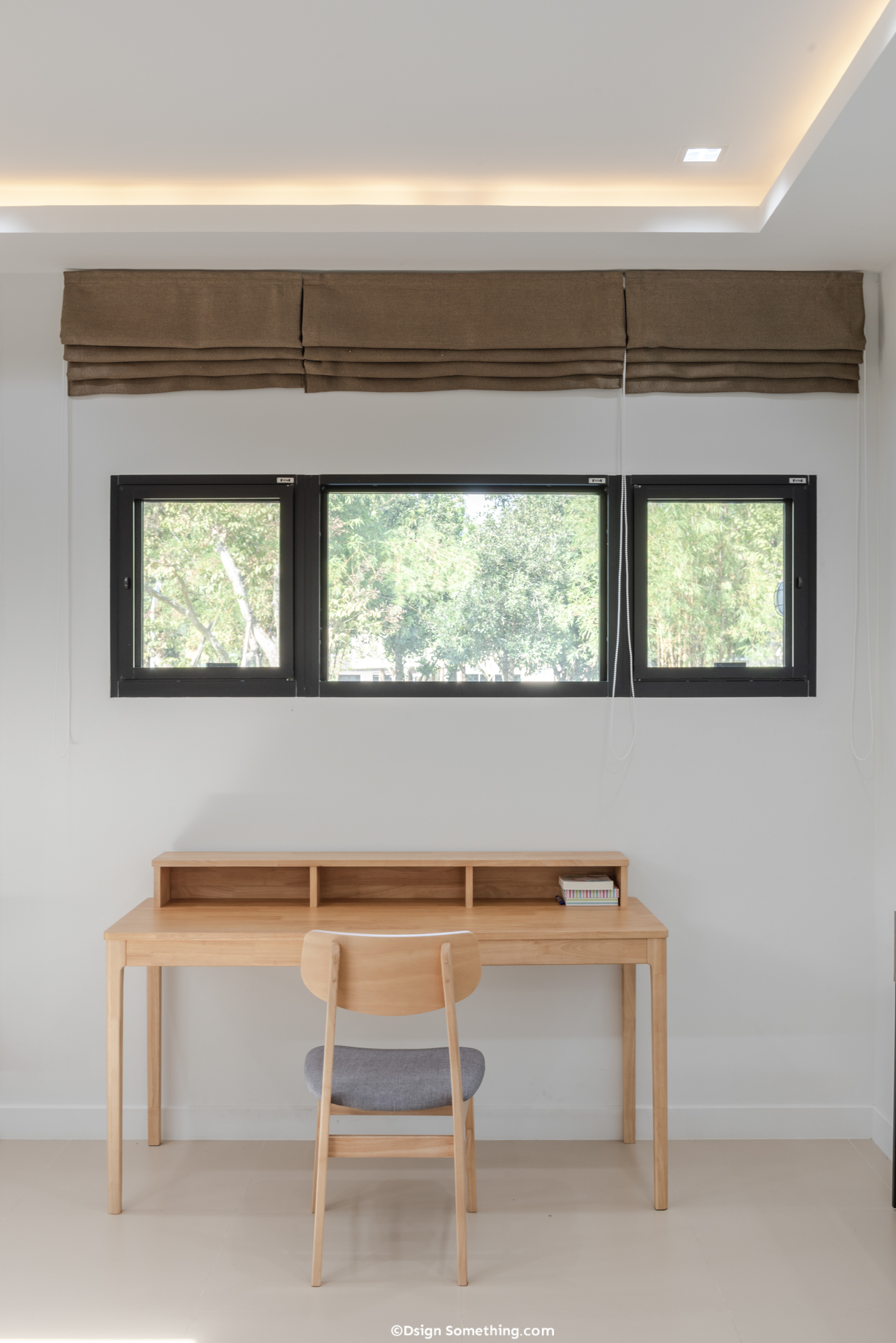ห้องนั่งเล่นที่เพิ่มลูกเล่นด้วยการออกแบบ Skylight โดยกำหนดขนาดความยาวกระจกให้พอเหมาะกับพื้นที่นั่งเล่นบนเฟอร์นิเจอร์ลอยตัวอย่างโซฟา