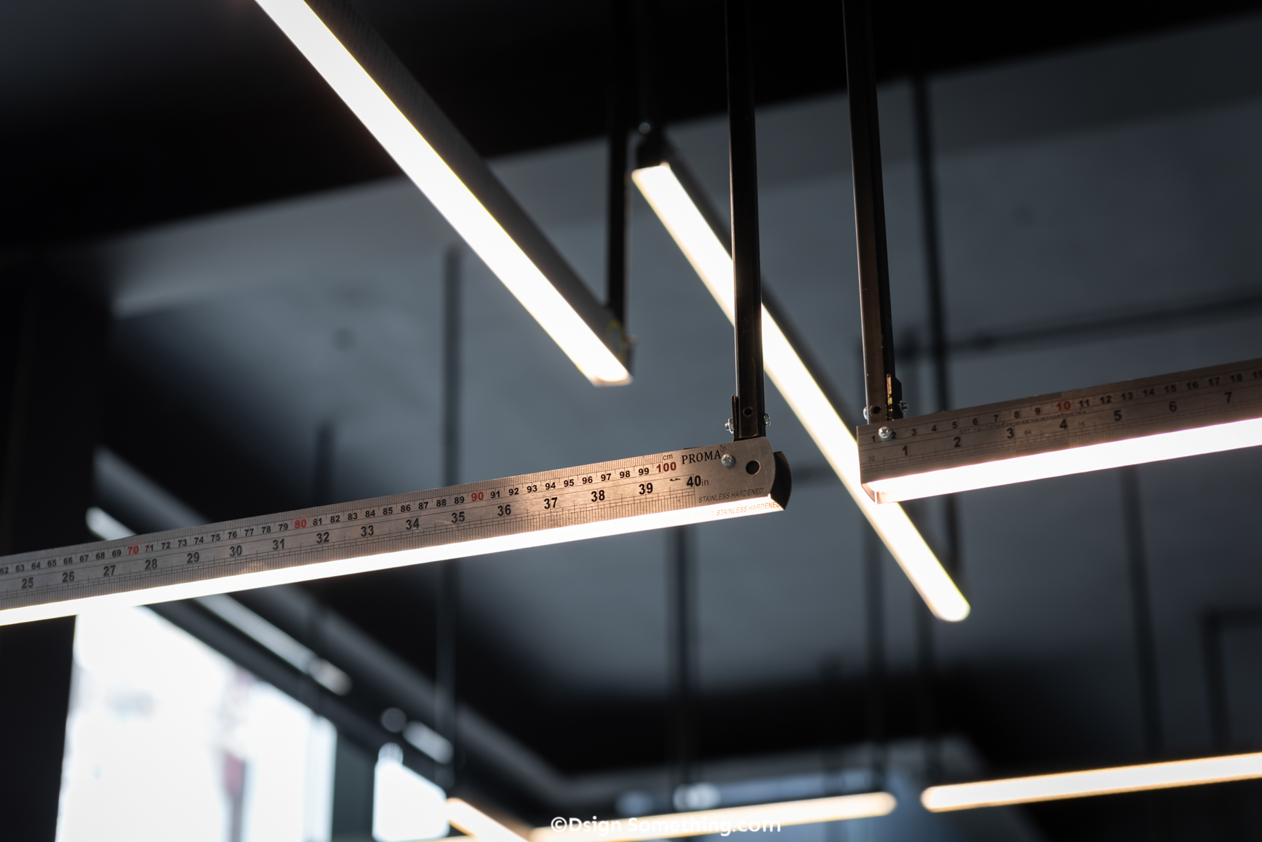 ‘ไม้บรรทัดฟุตเหล็ก’ ซึ่งเป็นเครื่องมือเริ่มต้นของเหล่าสถาปนิก ถูกนำมาดัดแปลงเป็นกล่องใส่ไฟของทางร้าน สร้างความแปลกใหม่ไม่ซ้ำใครและสามารถสื่อถึงตัวตนสถาปนิกได้อย่างชัดเจน