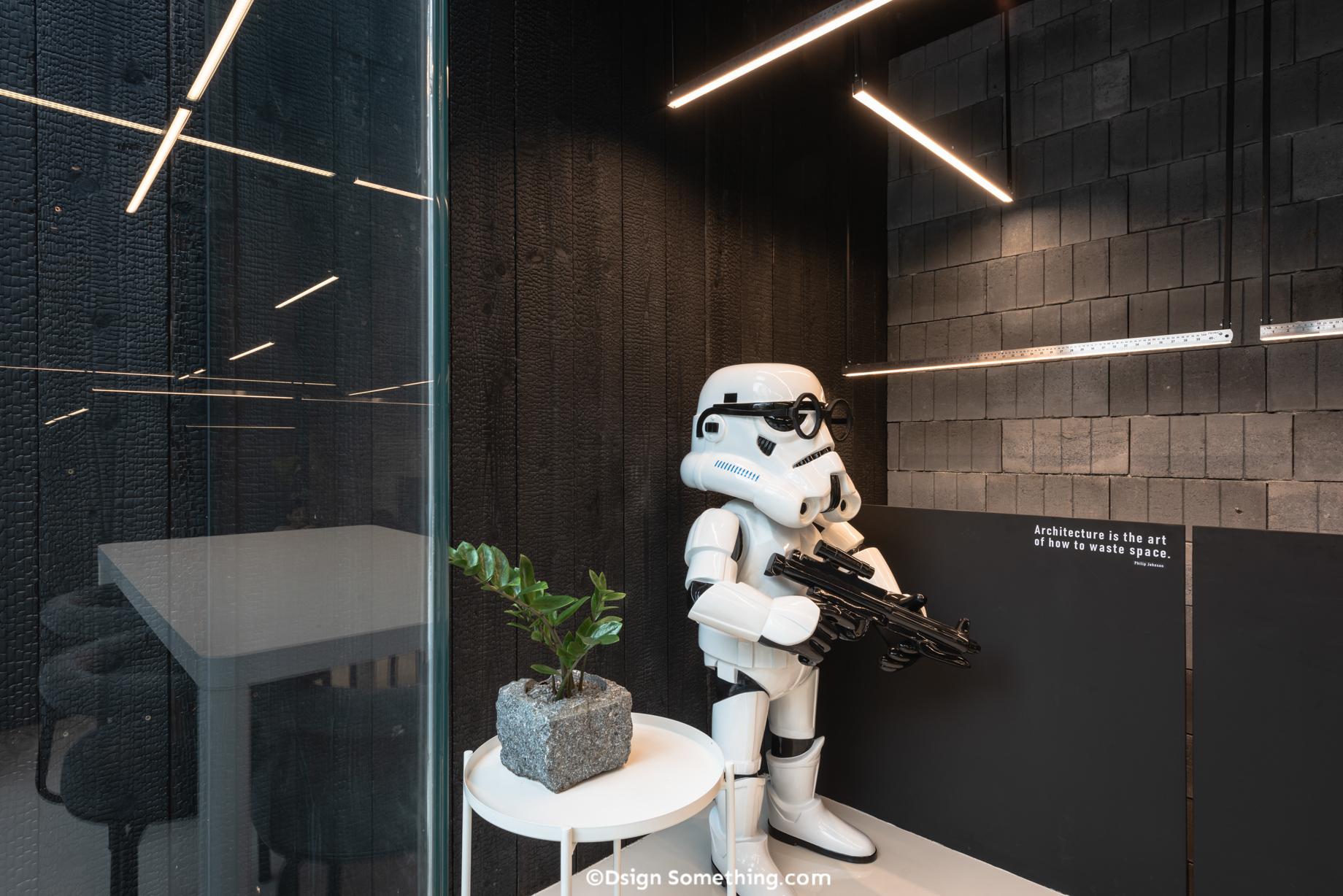 Corbutrooper ที่เกิดจากการนำฟิกเกอร์ Stormtrooper มาใส่แว่นตาสไตล์ Le Corbusier ช่วยสร้างสีสันและความสนุกให้กับร้านกาแฟได้เป็นอย่างดี