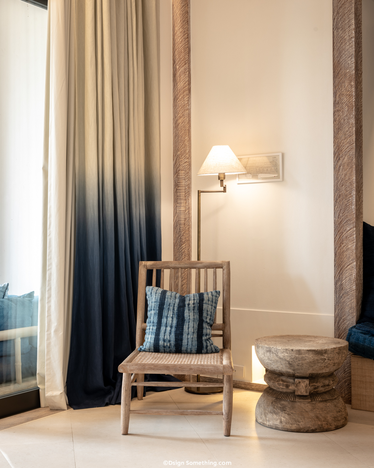 “คราม พลู สวีท” ห้องพักในชั้นล่างสุด มีสระว่ายน้ำส่วนตัว และเน้นการตกแต่งในโทนสีขาว-น้ำเงิน ซึ่งได้จากการย้อมคราม บนผ้าม่าน พรม หรือปลอกหมอนต่างๆ