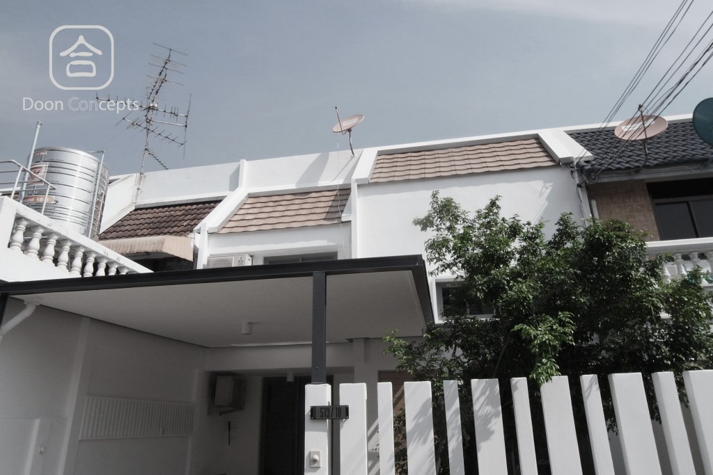 งานรีโนเเวท ทาวน์โฮม อายุเก่า 30 ปี นิยามของบ้านคือ เรียบง่าย สงบ และอบอุ่น อีกทั้งเจ้าของบ้านยังชื่นชอบเฟอร์นิเจอร์จาก Muji และปลื้มในบรรยากาศของร้านกาแฟเก๋เรียบแบบมินิมอล ผู้ออกแบบจึงเน้นใช้สามสีหลักๆ ขาว เทา และไม้ เพื่อให้บ้านเปี่ยมไปด้วยความผ่อนคลาย ตามความต้องการของเจ้าของที่เล่าให้ฟังไปก่อนหน้านั้น