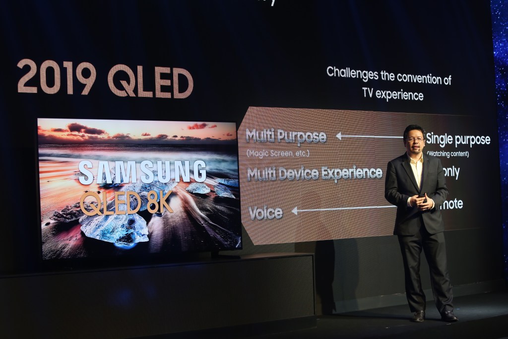 ซัมซุง เผยโฉม “ซัมซุง คิว แอลอีดี 8K” (Samsung QLED 8K) ครั้งแรกกับสุดยอดนวัตกรรมทีวีซึ่งถ่ายทอดความคมชัดเสมือนจริงระดับ 8K ด้วยการประมวลผลทุกความบันเทิงทั้งภาพและเสียงอย่างชาญฉลาดของชิปเซต Quantum Processor 8K และเทคโนโลยี 8K AI Upscaling นวัตกรรมล้ำยุคจากซัมซุงที่ช่วยอัพเกรดคุณภาพคอนเทนต์ให้ใกล้เคียง 8K โดยอัตโนมัติ นำประสบการณ์ความบันเทิงแห่งอนาคตมาถึงบ้านคุณก่อนใคร พร้อมกันนี้ยังเปิดตัวผลิตภัณฑ์ คิว แอลอีดี และซาวด์บาร์ รุ่นใหม่ ปี 2019 ตอกย้ำความเป็นผู้นำตลาดทีวีอันดับหนึ่งระดับโลกอย่างต่อเนื่อง 13 ปีซ้อน