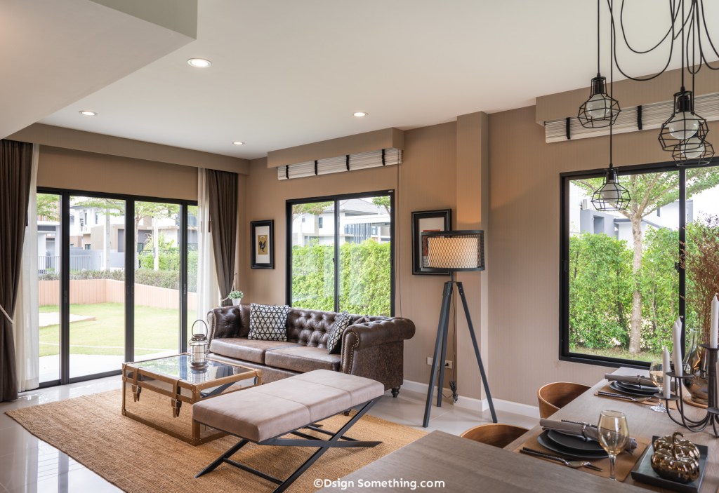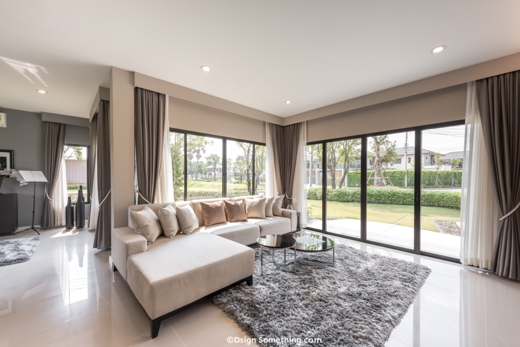 ห้องนั่งเล่นที่กว้างขวางบวกกับแนวคิดการเชื่อมต่อพื้นที่จากภายในสู่ภายนอก ทำให้ผู้อยู่อาศัยได้สัมผัสบรรยากาศที่รายล้อมไปด้วยธรรมชาติ