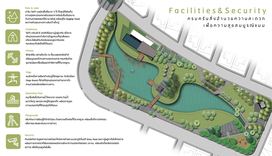 แปลนพื้นที่ส่วนกลางของโครงการที่เป็นสวนขนาดกว้าง