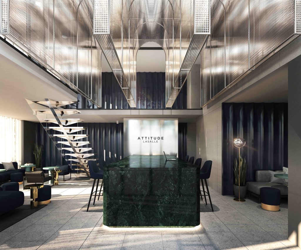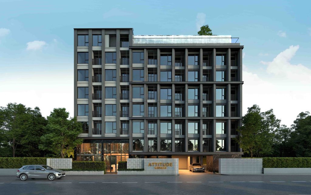 ATTITUDE Lasalle เป็นคอนโดมิเนียมประเภท Low rise ความสูง 8 ชั้น private เพียง 147 ยูนิต งานสถาปัตยกรรมออกแบบภายใต้แนวความคิด Modern Classic ที่นำเอาสัญลักษณ์ของความคลาสสิกอย่างเสาโรมันมาลดทอนสเกล คลี่คลายเส้นสายให้ออกมาโมเดิร์นขึ้นไปพร้อมกับทำหน้าที่เป็นเฉดบังความร้อนจากดวงอาทิตย์ไปในตัว ด้วยเส้นสายที่เกิดดังกล่าวทำให้ให้อาคารดูสูวไม่ทึบตัน ประกอบกับการใช้โทนสีโมโนโทนก็ยิ่งเพิ่มเสน่ห์ในแบบคลาสสิกแต่มีกลิ่นอายของความทันสมัยได้เป็นอย่างดี
