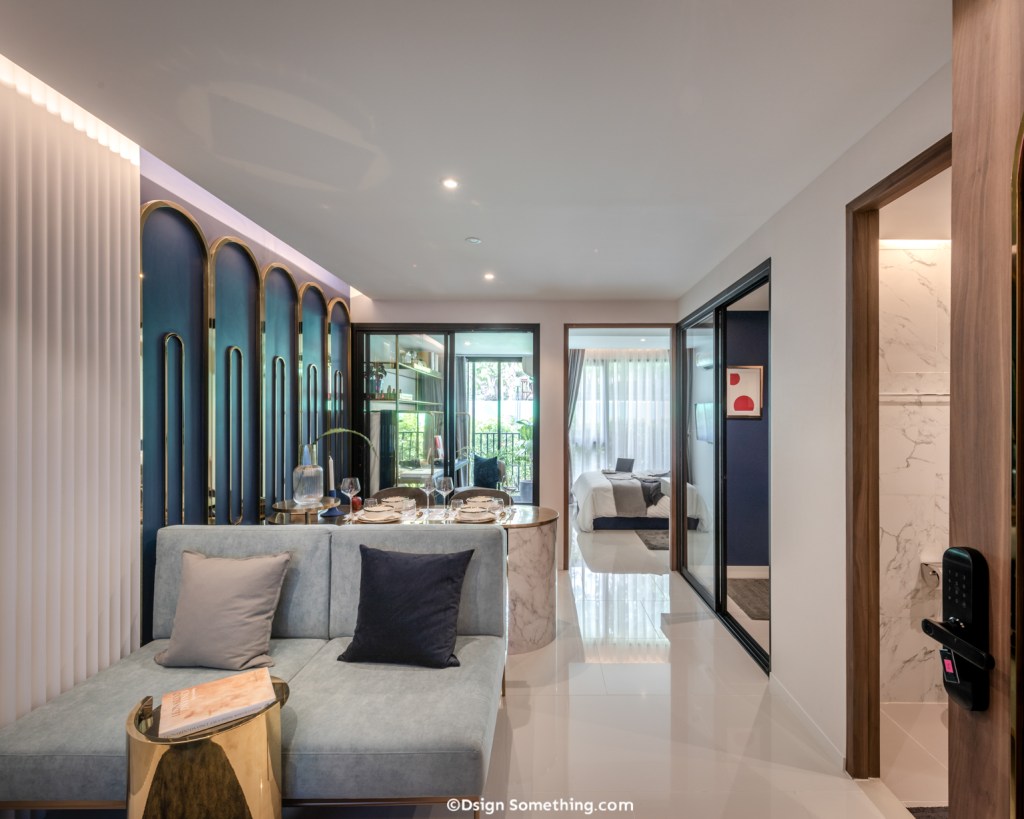 (One Bedroom -จากพื้นที่นั่งเล่นเชื่อมต่อกับส่วนของครัวได้อย่างลงตัวและเป็นสัดส่วน)