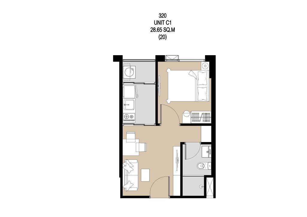 (One Bedroom Plus ห้องนอนเล็กที่สามารถปรับเปลี่ยนเป็นห้องทำงานได้)